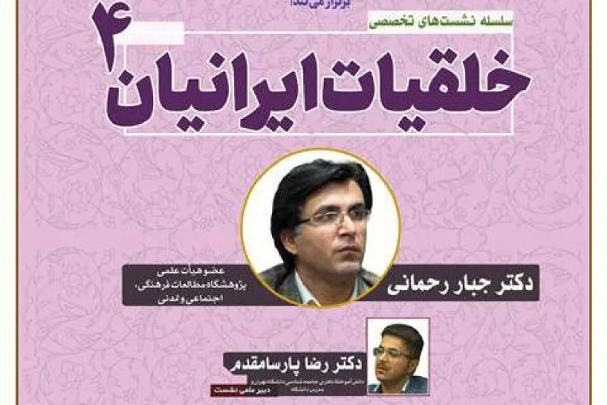 چهارمین نشست از سلسلهنشستهای «خلقیات ایرانیان» از سوی پژوهشگاه فرهنگ، هنر و ارتباطات و با همکاری دانشکده علوماجتماعی دانشگاه تهران برگزار میشود.