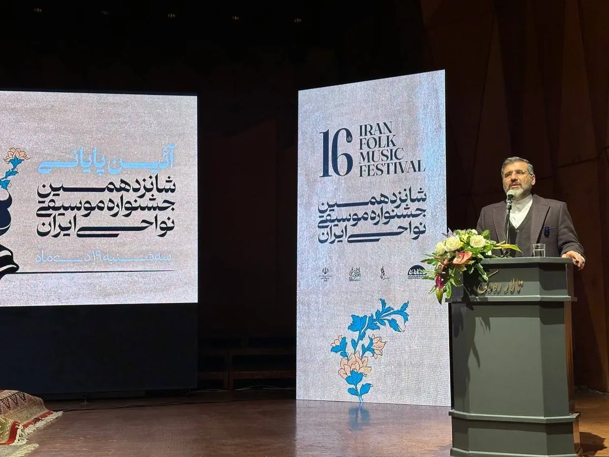 به گزارش خبرنگار فرهنگ و جامعه خبرگزاری علم و فناوری آنا، محمدمهدی اسماعیلی وزیر فرهنگ و ارشاد اسلامی در آیین اختتامیه شانزدهمین جشنواره موسیقی نواحی نوزدهم دی ماه در تالار رودکی طی صحبت هایی گفت: خداراشاکرم که در واپسین ساعت ها توفیق حضور در اختتامیه را یافتم. این حوزه ، حوزه اصیل و هویتی در کشور ما است. برگزاری جشنواره موسیقی نواحی برای ما خیلی با اهمیت است.