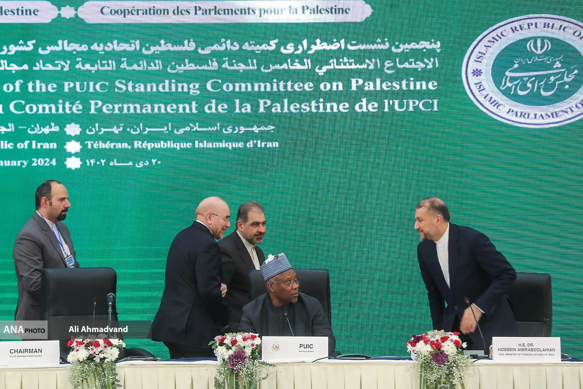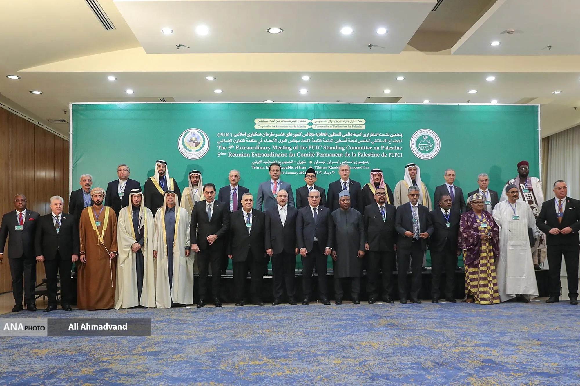 پنجمین نشست اضطراری کمیته دائمی فلسطین اتحادیه مجالس کشورهای عضو سازمان همکاری اسلامی (PUIC) و اولین نشست کمیته فلسطین مجمع مجالس آسیایی (APA) با حضور محمدباقر قالیباف رئیس مجلس شورای اسلامی و مقامات ۱۶ کشور در هتل آزادی تهران آغاز به کار کرد.