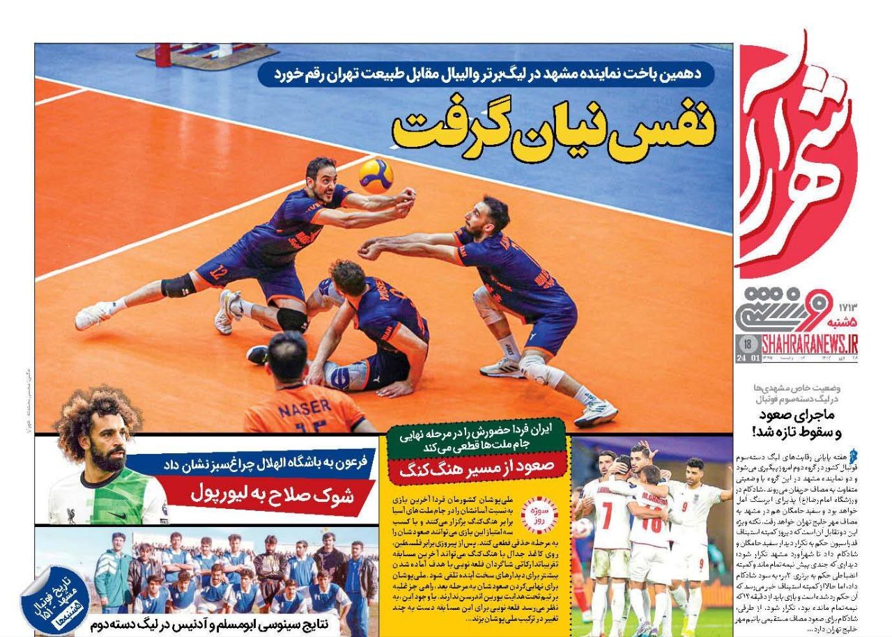 تصویر جلد روزنامه های ورزشی پنجشنبه ۲۸ دی ۱۴۰۲ قابل مشاهده است.