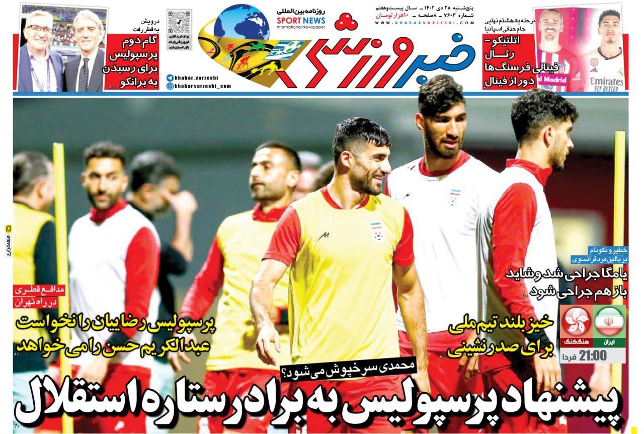 روزنامههای ورزشی پنجشنبه ۲۸ دی ۱۴۰۲