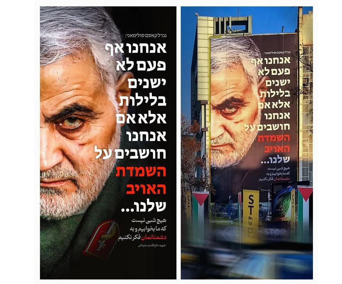 طرح جدید دیوارنگاره میدان فلسطین تهران با جملهای عبری از حاج قاسم سلیمانی رونمایی شد.