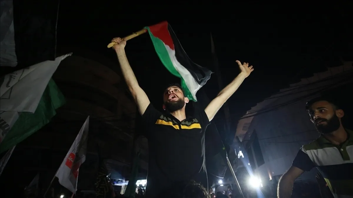 شماری از مردم فلسطین در جنوب غزه پنجشنبه شب پس از انتشار بیانیه وزارت خارجه قطر مبنی بر احتمال برقراری آتش‌بس، تجمع کردند و به شادمانی پرداختند.