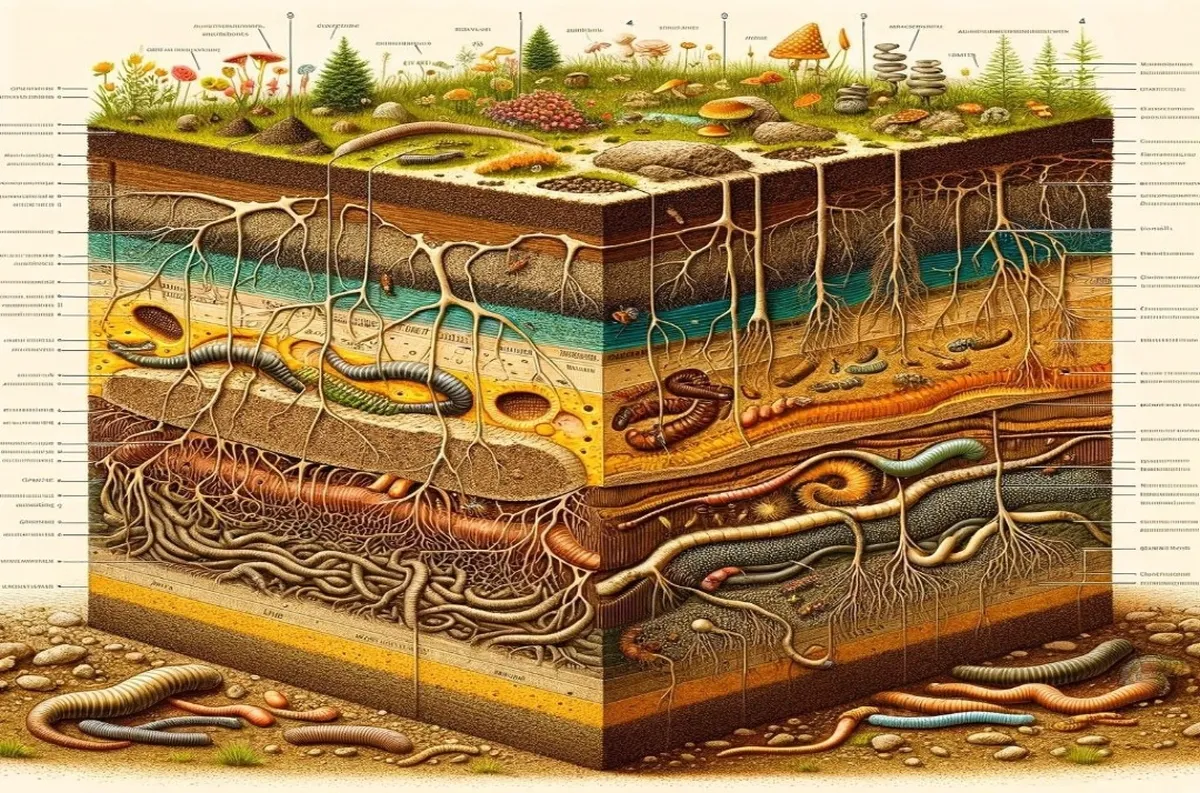 علاوه بر این، خاک از لایههای متعددی تشکیل شده است که به آنها افق میگویند. سه افق خاک، A، B و C نام دارند.
