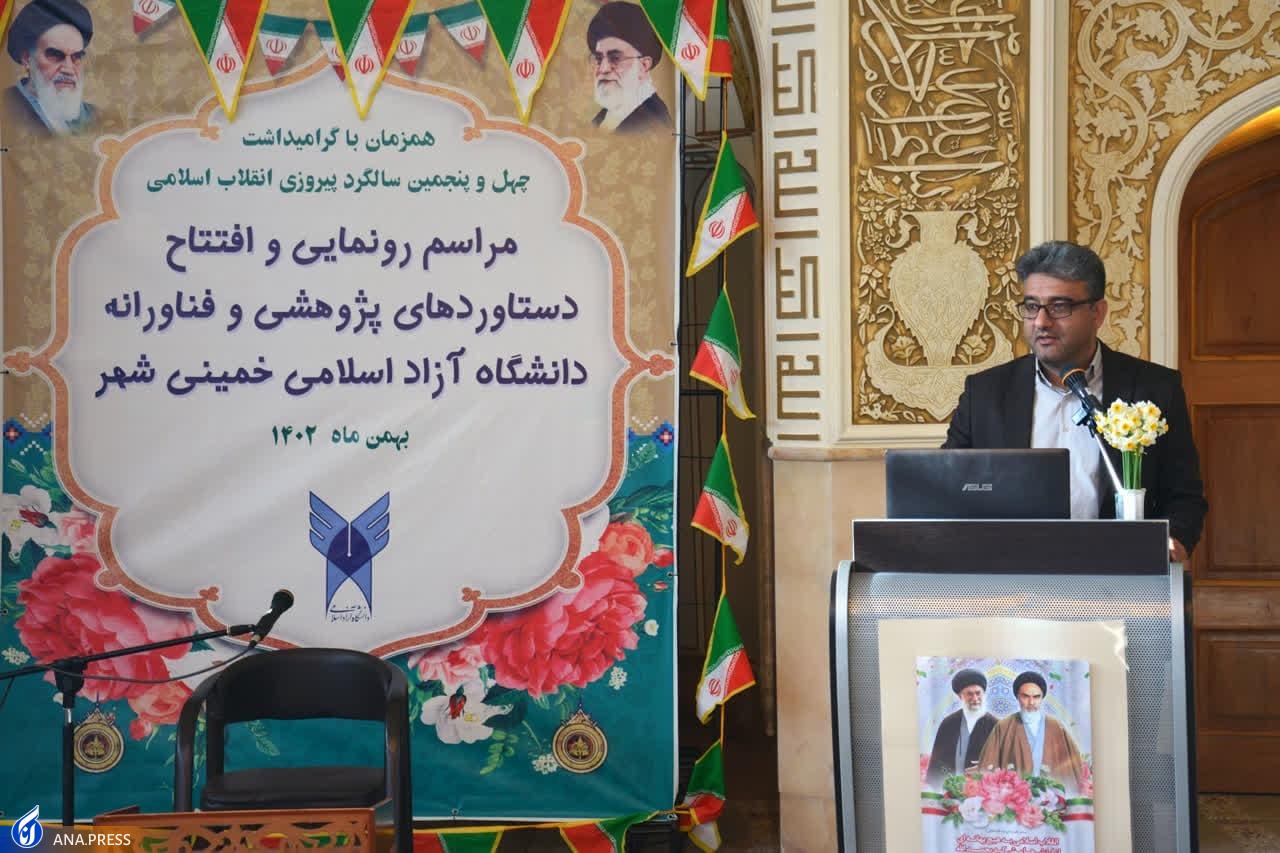رئیس دانشگاه آزاد اسلامی واحد خمینیشهر در این مراسم به ارائه گزارشی از دستاوردهای پژوهشی و فناورانه این دانشگاه پرداخت و گفت: دانشگاه آزاد خمینیشهر براساس رهنمودهای امام خمینی(ره) اگر دانشگاه اسلامی، تحصیلات، تهذیب و تعهد باشد آن کشور به سعادت خواهد رسید، همچنین مقام معظم رهبری فرمودند که اگر دانشگاه بخواهد نقش ایجاد و پرورش قوه عاقله کشور را درست ایفا کند، یک الزاماتی دارد که باید به این الزامات حتماً توجه کند.
