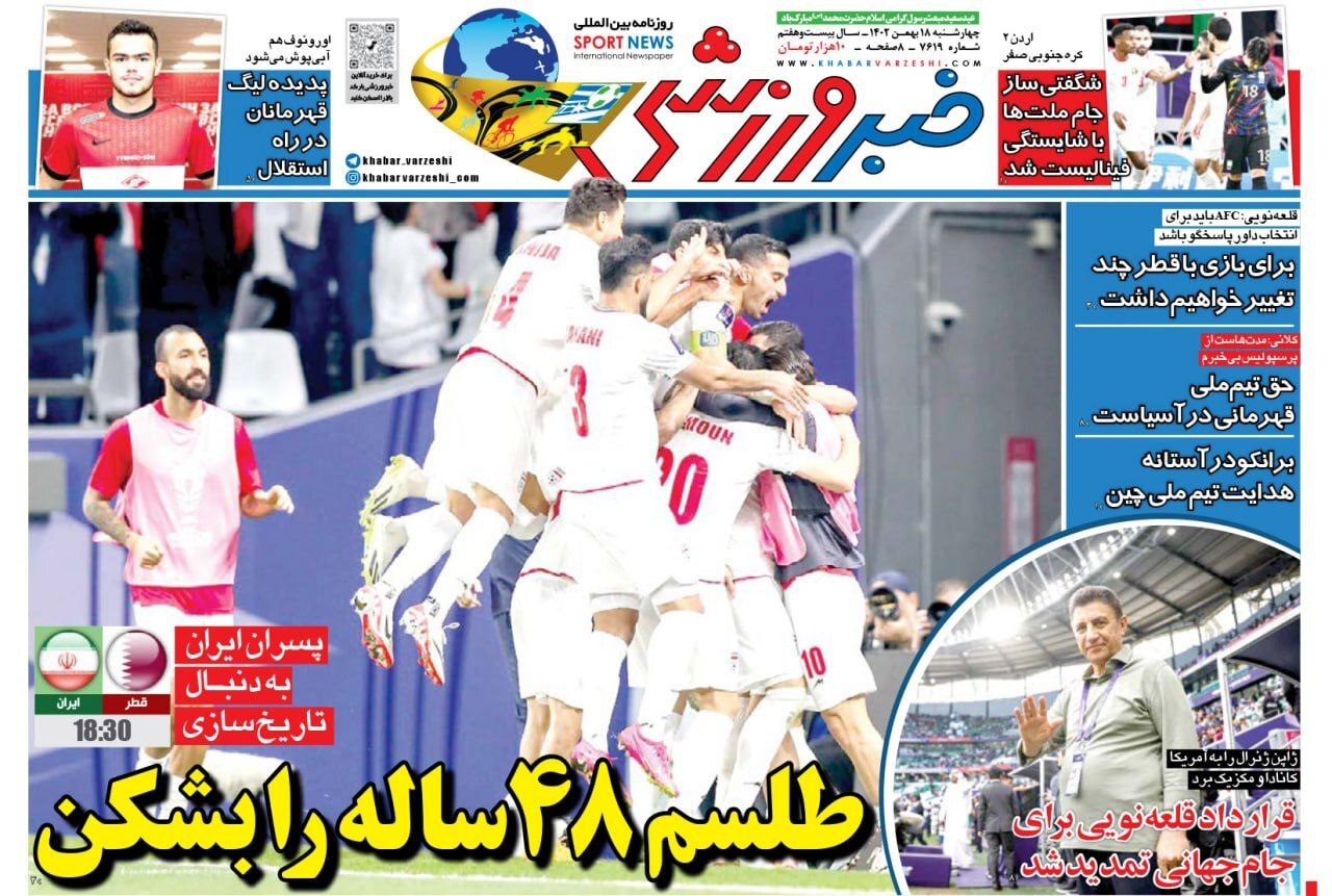 روزنامههای ورزشی چهارشنبه ۱۸ بهمن ۱۴۰۲