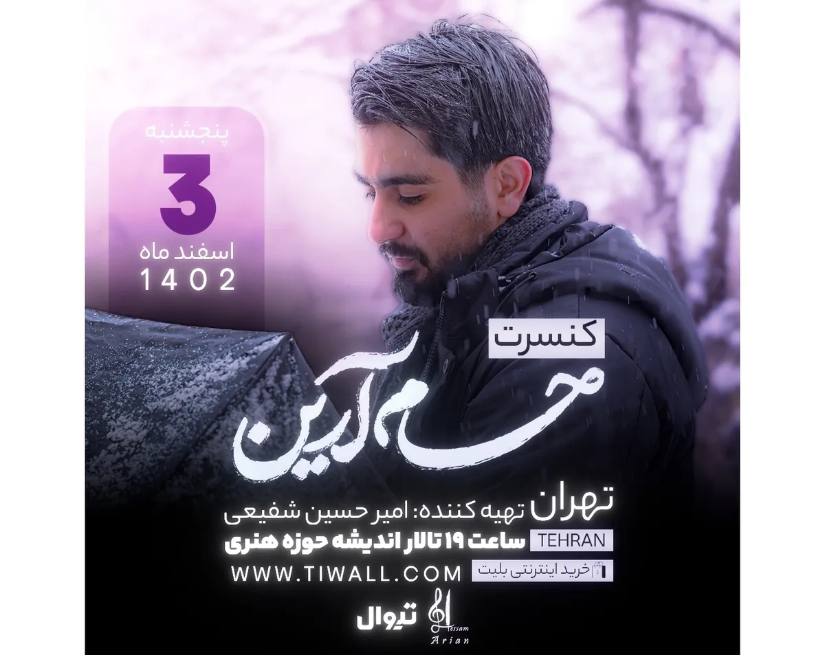 کنسرت «حسام آرین» سوم اسفند ماه به تهیه کنندگی امیرحسین شفیعی ساعت ۱۹ در تالار اندیشه حوزه هنری برپا می‌شود.