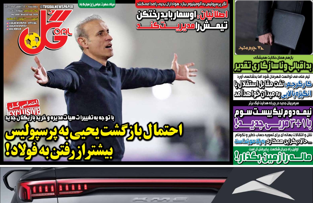 پیشخوان روزنامههای ورزشی چهارشنبه ۲۵ بهمن ۱۴۰۲ را مشاهده کنید.