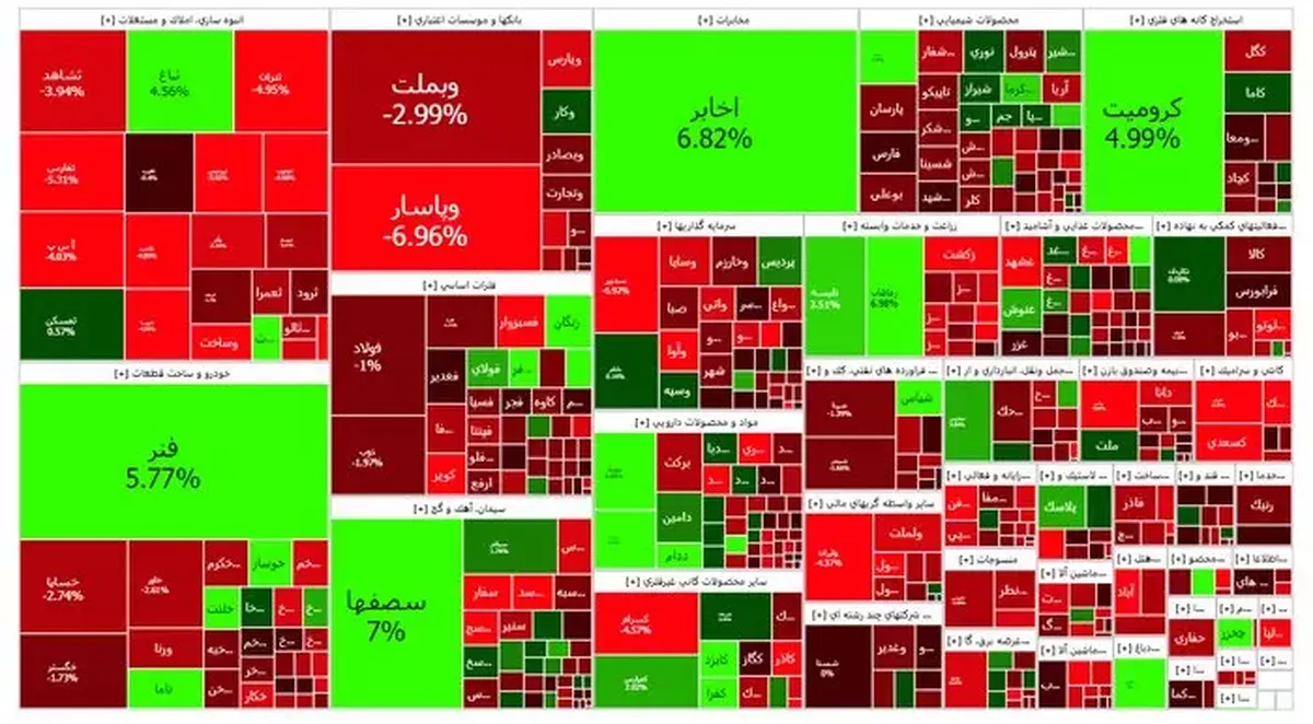 شاخص هم‌وزن با ۴ هزار و ۹۸۰ واحد کاهش به ۷۲۷ هزار و ۶۳۰ واحد رسید. نماد‌های «وپاسار، وبملت، فولاد، شپنا، شستا و شبندر» بیشترین تاثیر منفی را بر شاخص داشتند.