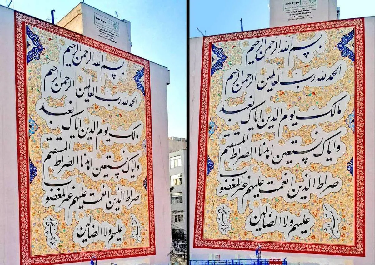 دیوارنگاره «سوره حمد» برگرفته شده از اثر خوشنویسی این سوره، توسط استاد میرعماد قزوینی رونمایی شد.