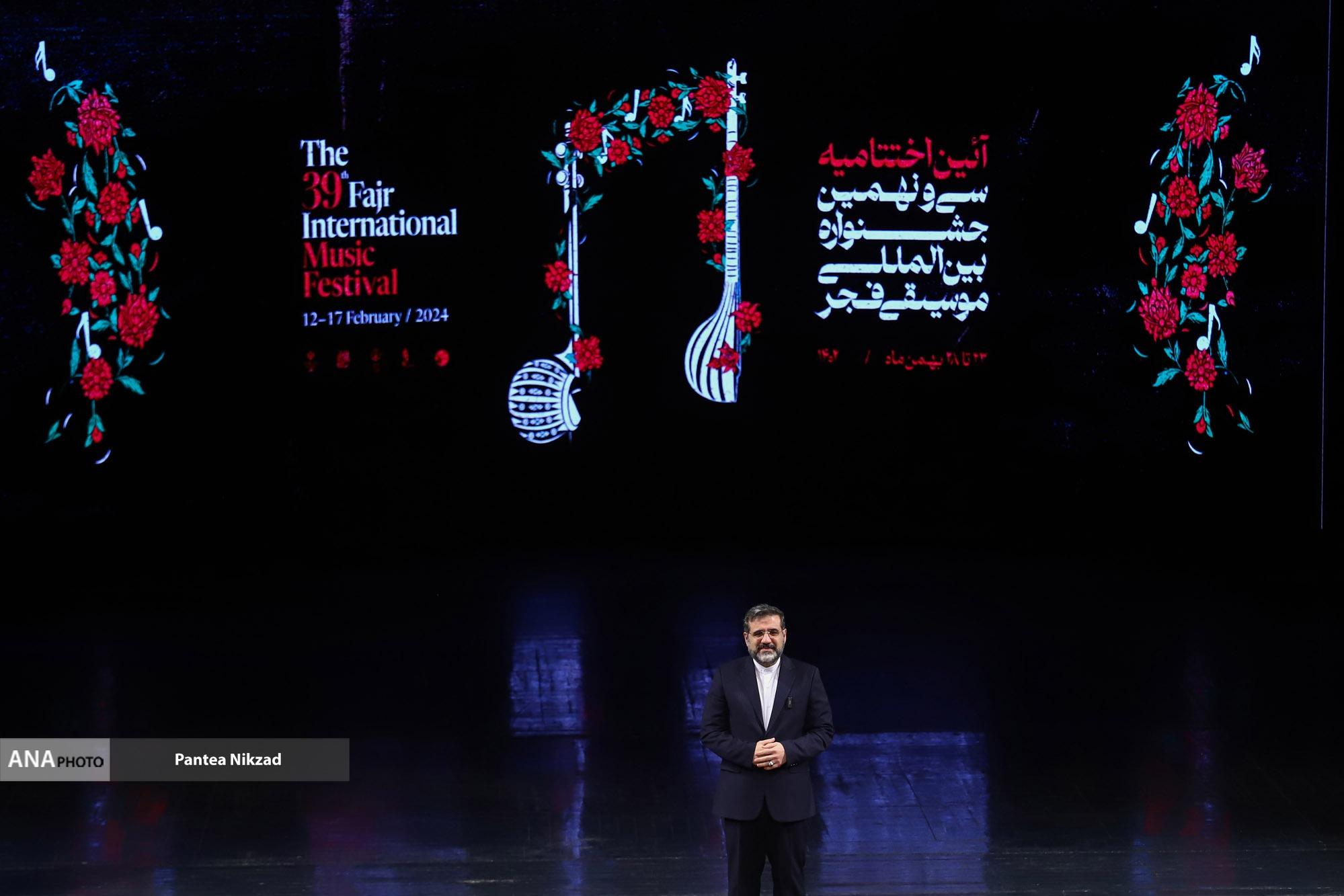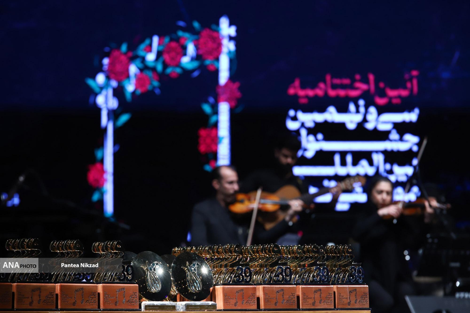 مراسم اختتامیه سی و نهمین جشنواره بین المللی موسیقی فجر شامگاه شنبه با حضور محمدمهدی اسماعیلی وزیر فرهنگ و ارشاد اسلامی و با اهدای جوایز به برگزیدگان ترانه، جایزه موسیقی و رسانه در تالار وحدت تهران برگزار شد.