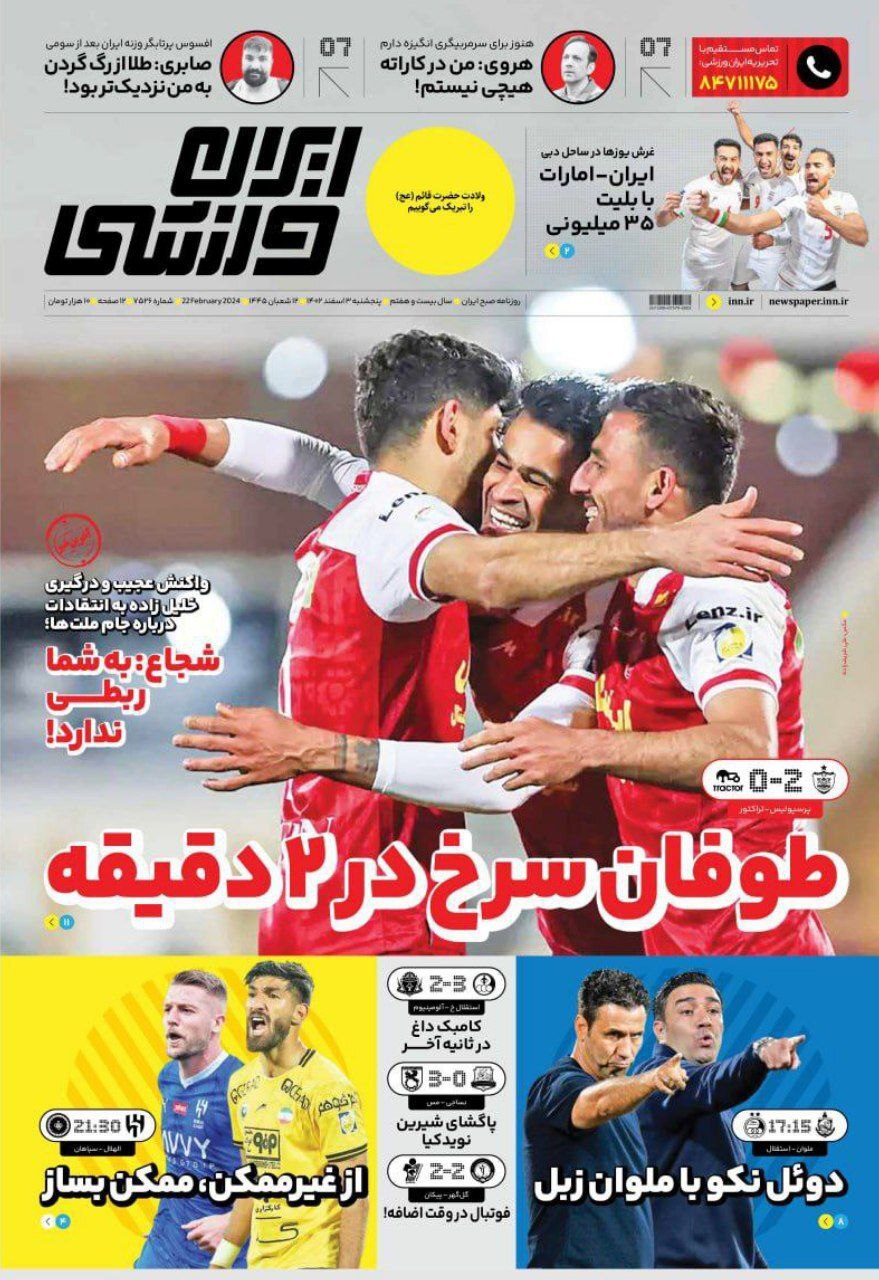 روزنامههای ورزشی پنجشنبه ۳ اسفند ۱۴۰۲