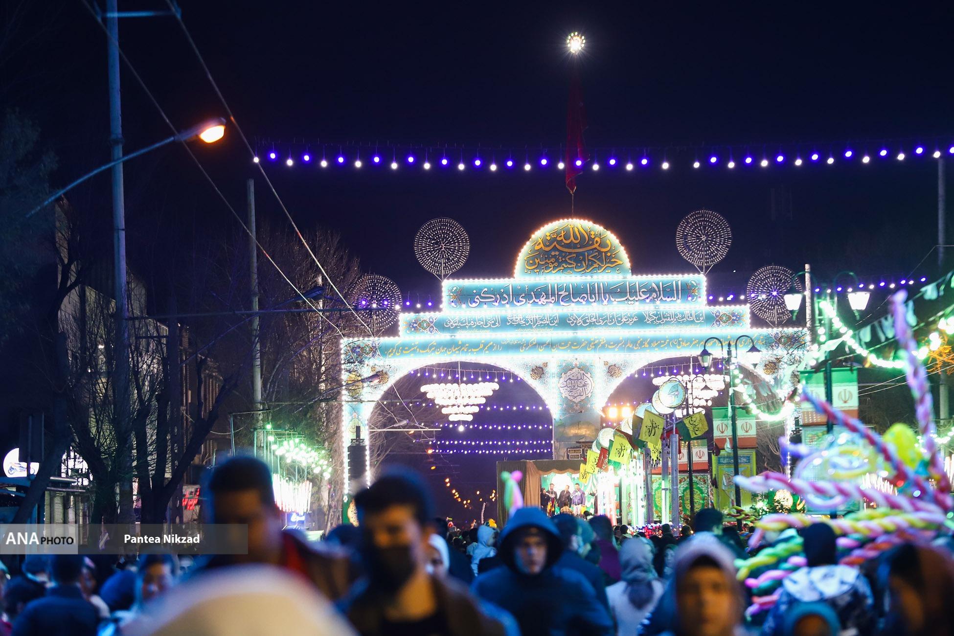همزمان با شب نیمه شعبان و میلاد حضرت امام مهدی(عج)، دوستداران آن حضرت با حضور در معابر و بویژه محلات جنوبی پایتخت که با طاق نصرت، بیرقهای مذهبی و چراغانی به شکل زیبایی آذینبندی شده بود این شب عزیز را جشن گرفتند.