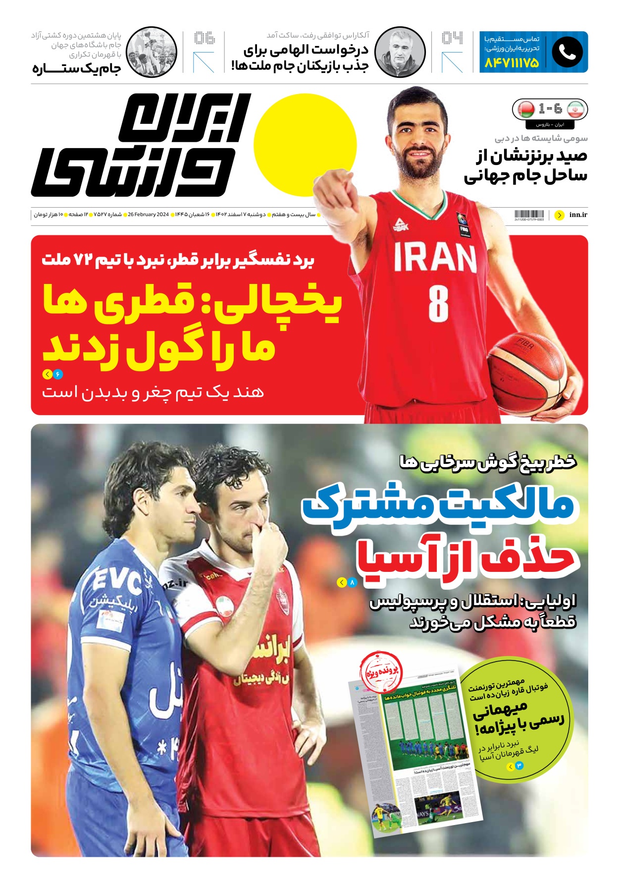 روزنامههای ورزشی دوشنبه ۷ اسفند ۱۴۰۲