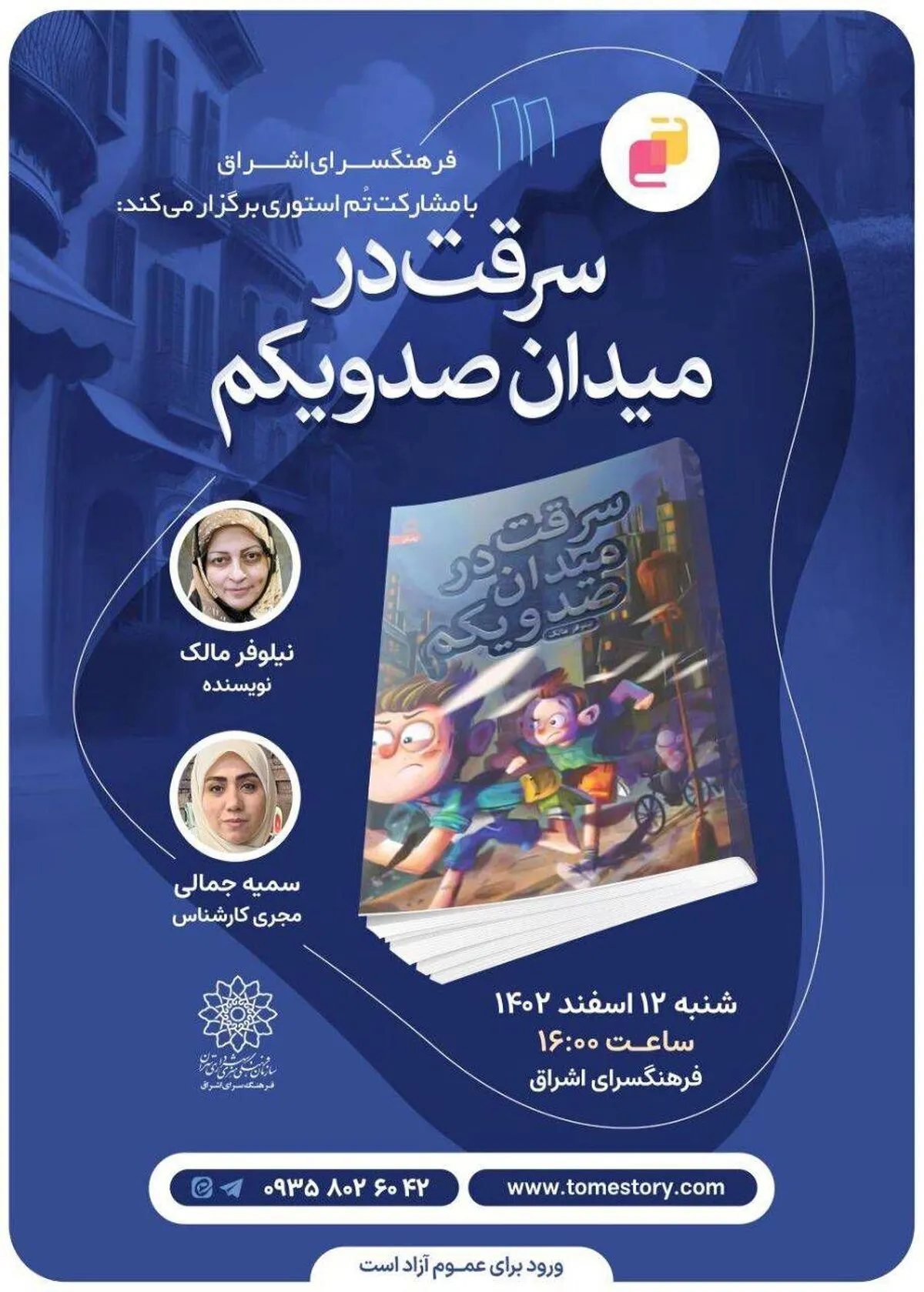 به گزارش گروه فرهنگ و جامعه خبرگزاری علم و فناوری آنا، جلسه معرفی و نقد کتاب «سرقت در میدان صدویکم» نوشته نیلوفر مالک با حضور نویسنده کتاب روز شنبه ۱۲ اسفندماه در فرهنگسرای اشراق برگزار میشود.