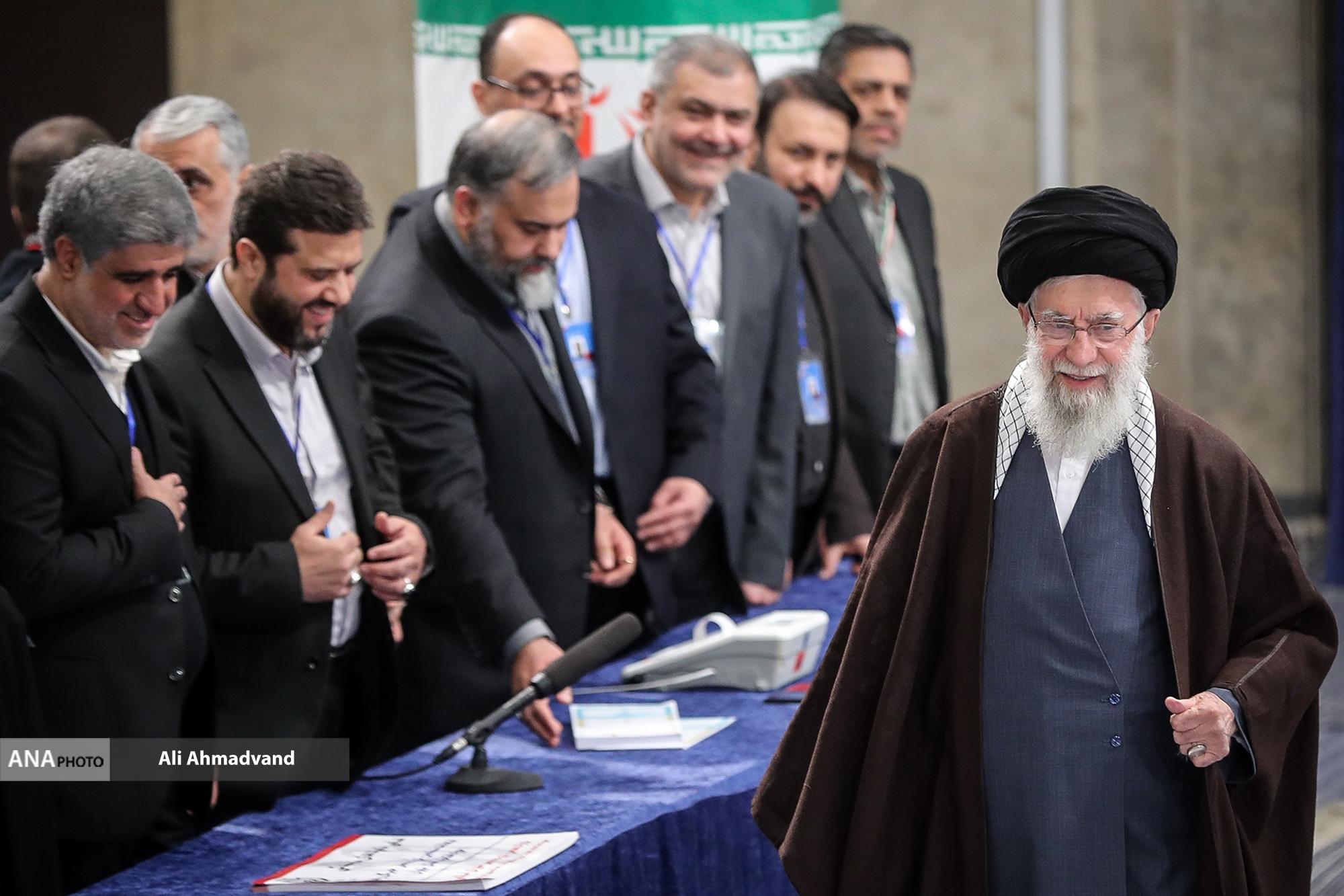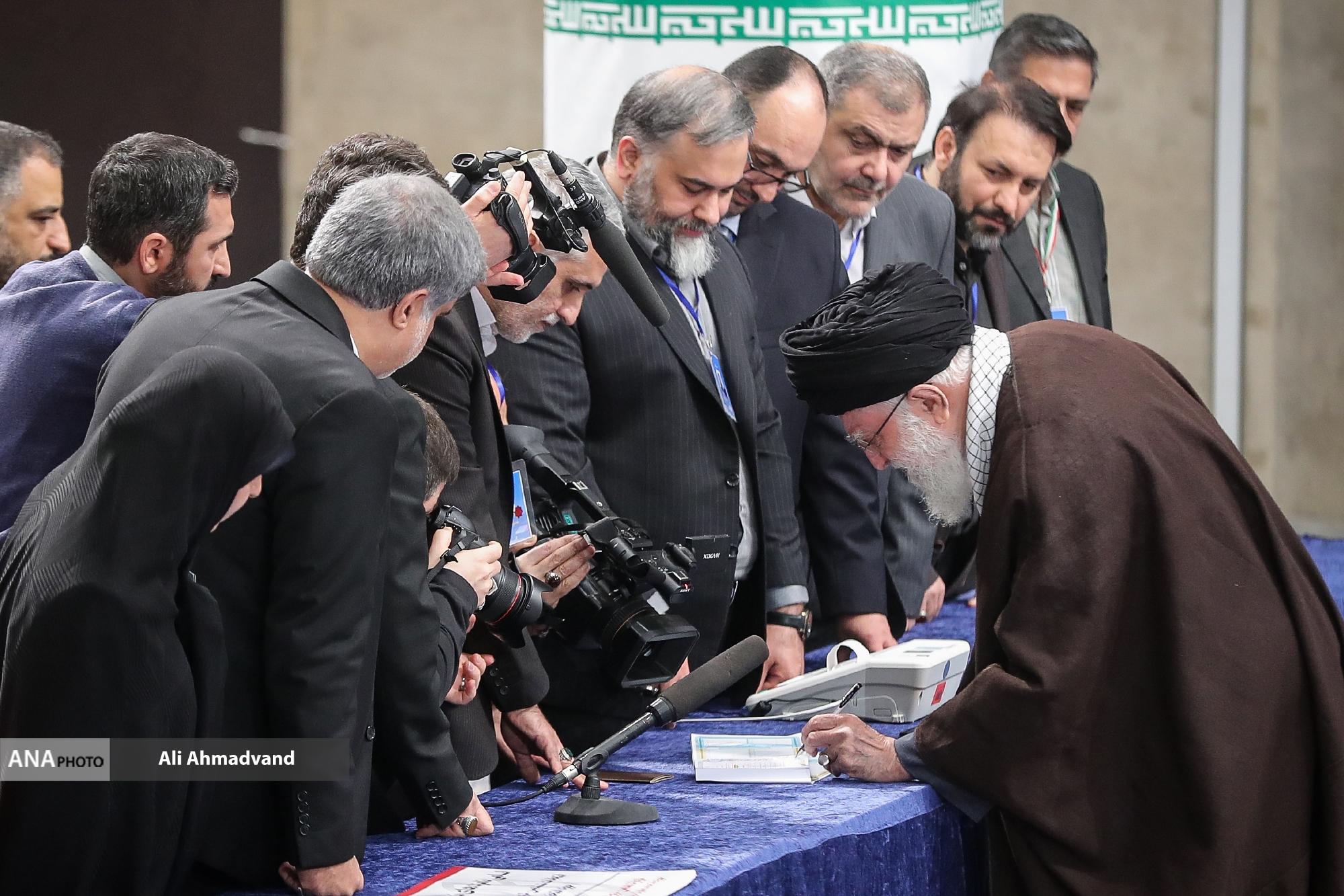 حضرت آیتالله خامنهای رهبر انقلاب اسلامی در اولین دقایق آغاز رأیگیری دوازدهمین دورهی انتخابات مجلس شورای اسلامی و ششمین دوره ی مجلس خبرگان رهبری با حضور در محل صندوق سیار ۱۱۰ در حسینیهی امام خمینی(ره)، آراء خود را به صندوق انداختند.
