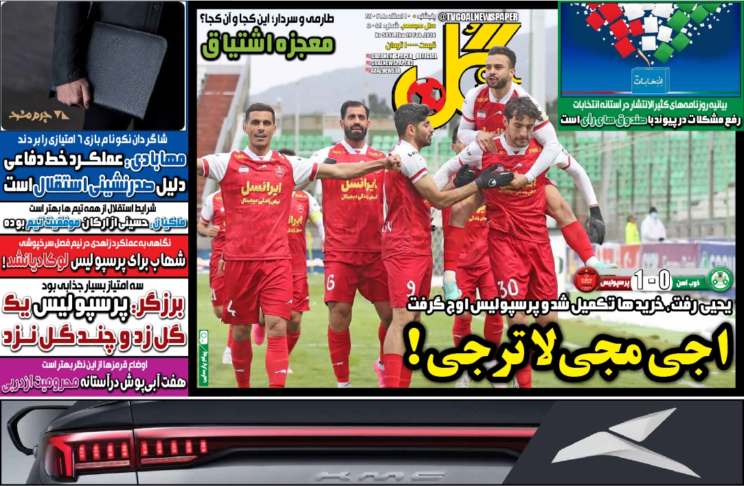 پیشخوان روزنامههای ورزشی پنجشنبه ۱۰ اسفند ۱۴۰۲ را مشاهده کنید.