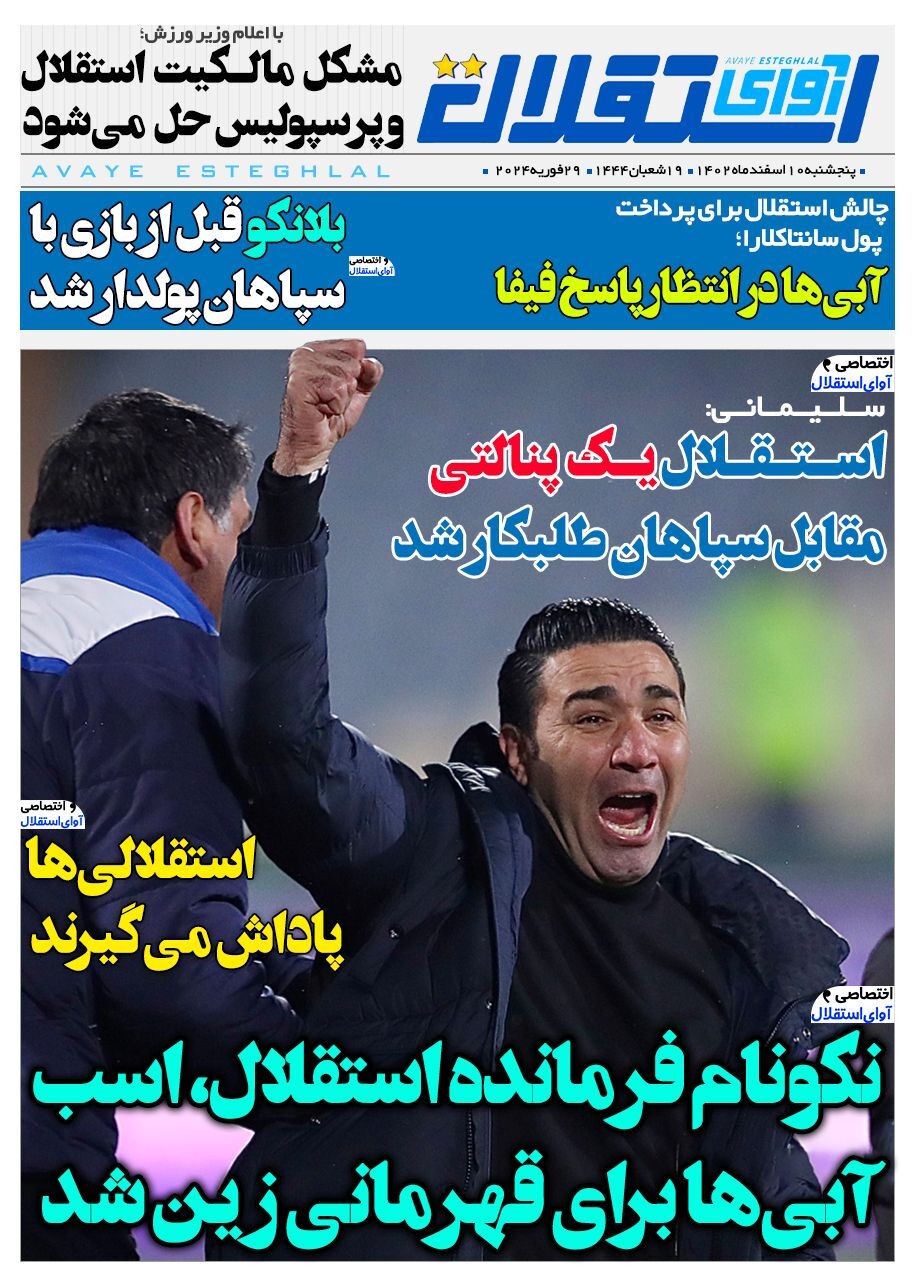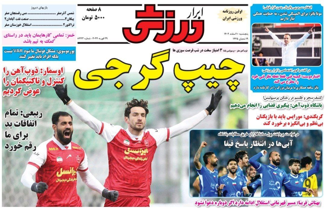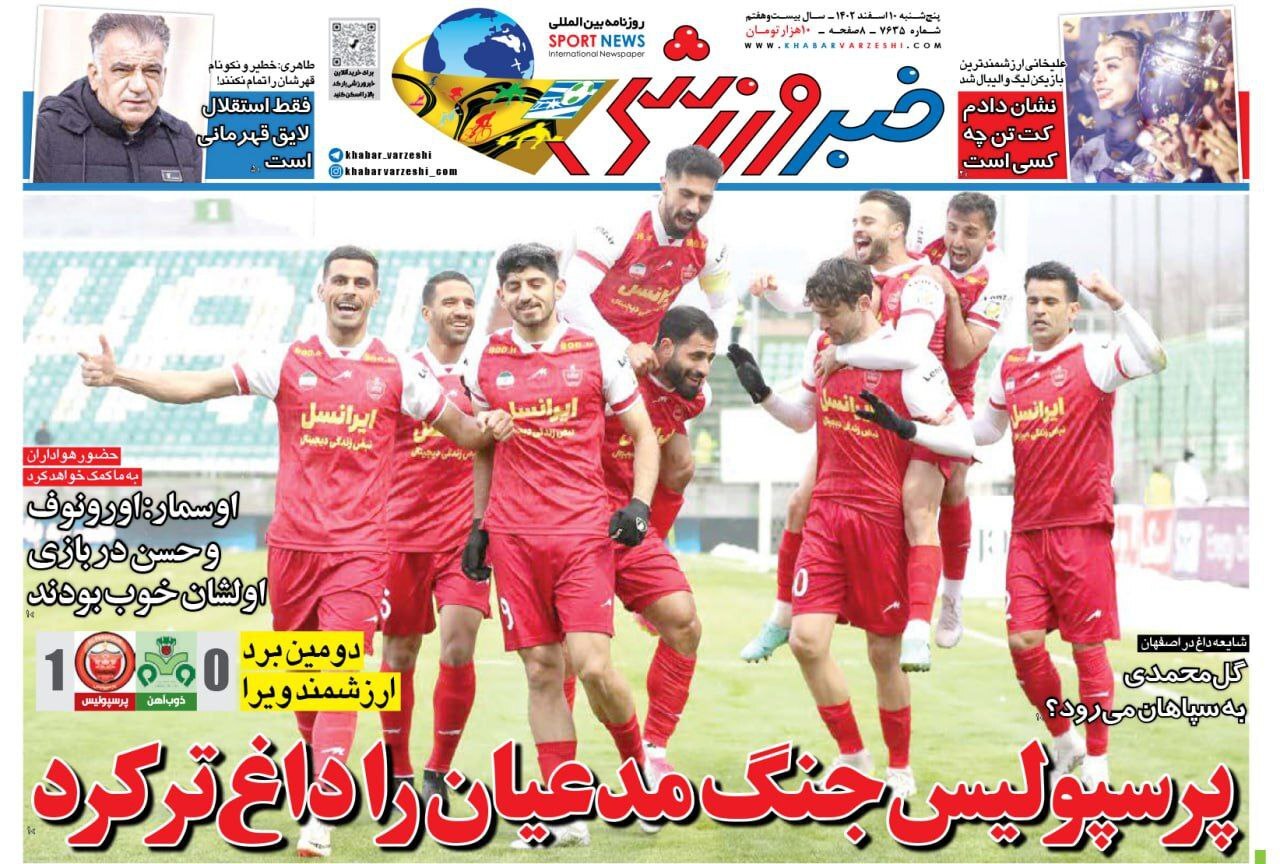 روزنامههای ورزشی پنجشنبه ۱۰ اسفند ۱۴۰۲