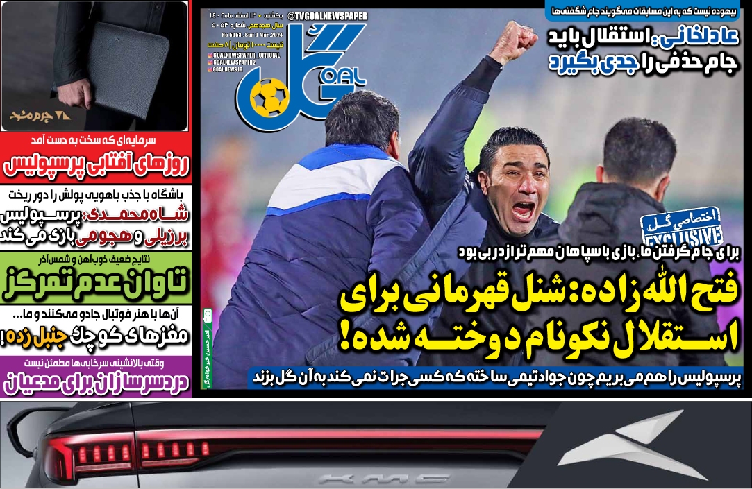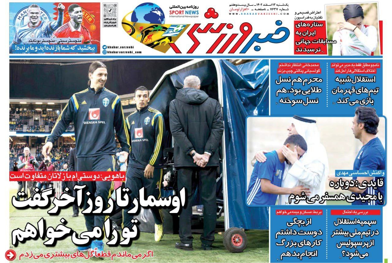 روزنامههای ورزشی یکشنبه ۱۳ اسفند ۱۴۰۲