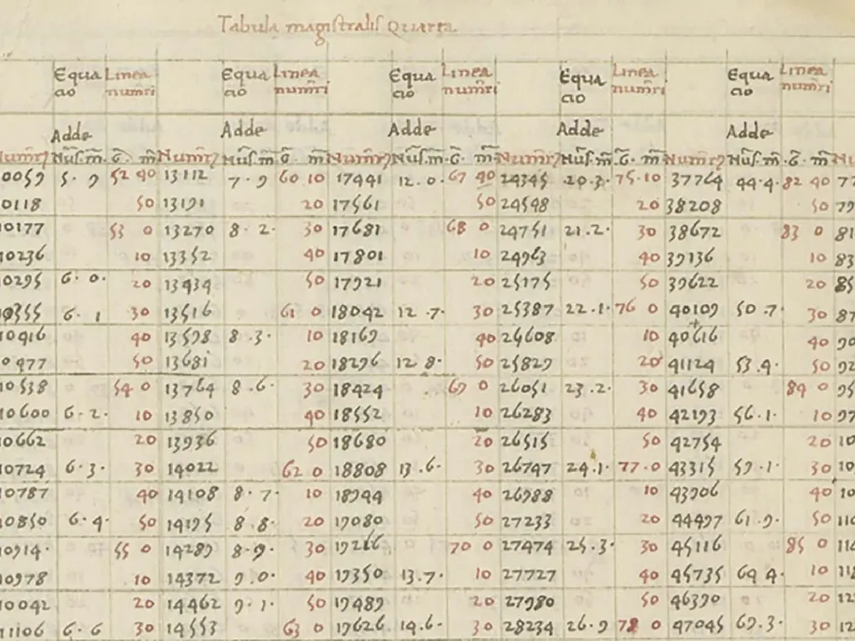 جدولی که بروملن مطالعه می‌کرد، سندی است که توضیح می‌دهد چگونه مختصات سیارات محاسبه می‌شوند. در آن زمان، بیانکینی برای خانوادۀ استس (d’Estes) کار می‌کرد که خانوادۀ حاکم بر ونیز بودند. او که پیشتر تاجر بود و اکنون وزیر خانوادۀ استس شده بود، به این خانواده در تنظیم امور تجاری خود کمک می‌کرد، اما همزمان مسئول طراحی تقویم‌ها نیز بود و بدین ترتیب وظیفه داشت از دانش خود دربارۀ مثلثات استفاده و آسمان شب را مطالعه کند. ستاره‌شناسان سده‌های میانی طبیعتاً کامپیوتری نداشتند و برای محاسبات خود بر جدول‌هایی مشابه این متکی بودند.