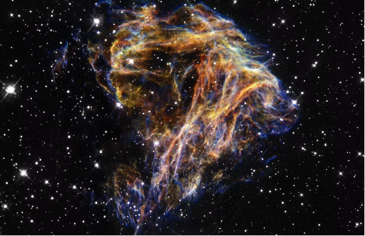 این عکس که توسط تلسکوپ فضایی هابل ناسا گرفته شده است به جرقههای آتشبازی به نظر میرسد و رشتههای نازکی را نشان میدهد که از انفجار ستارهای در کهکشان ابر ماژلانی بزرگ در آن نزدیکی به وجود آمدهاند.