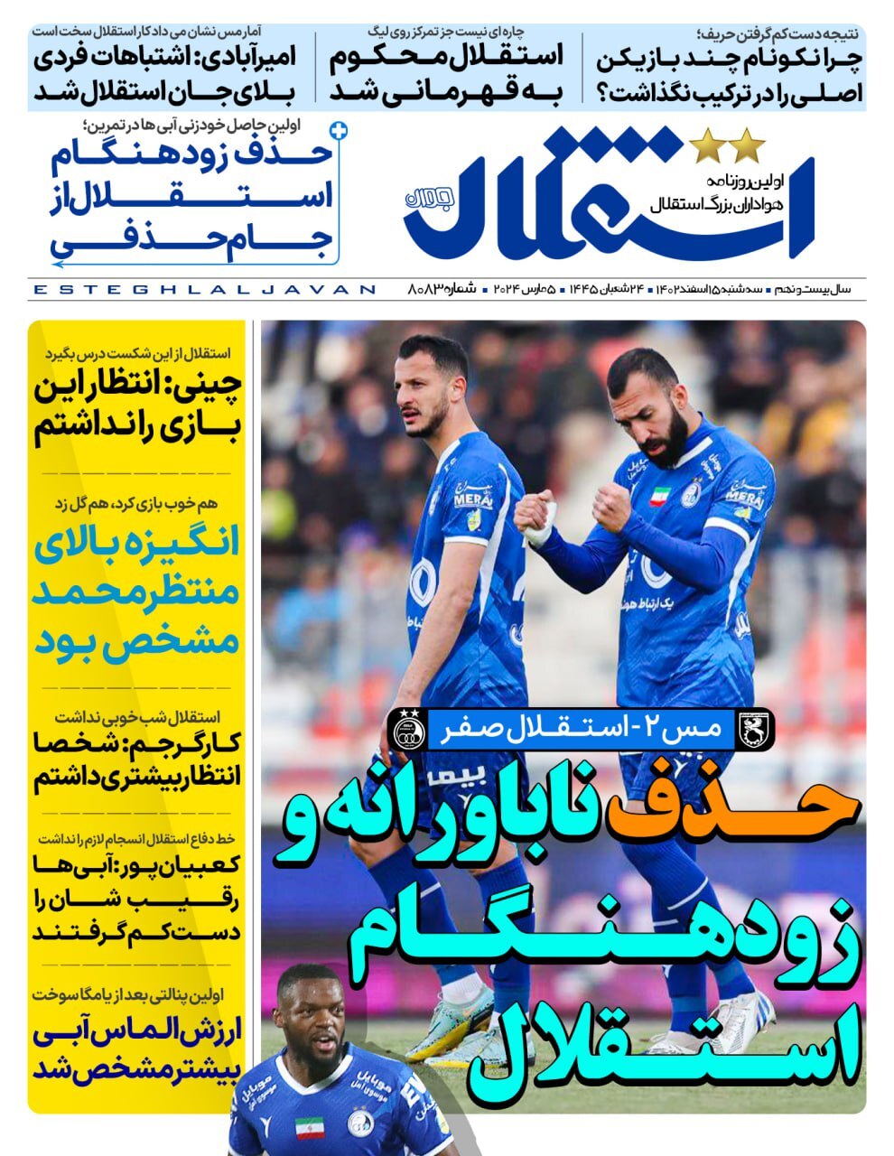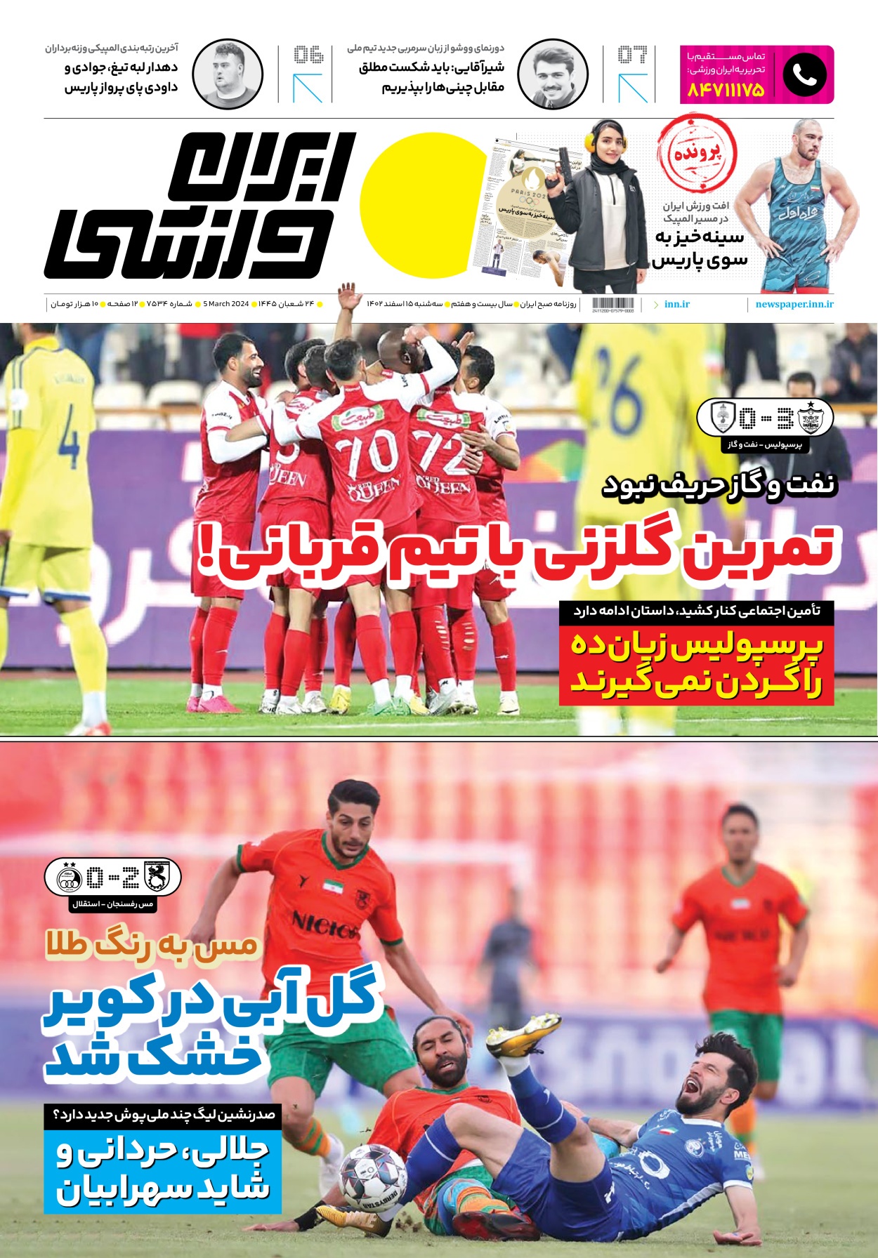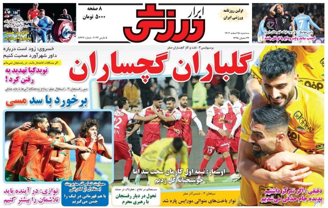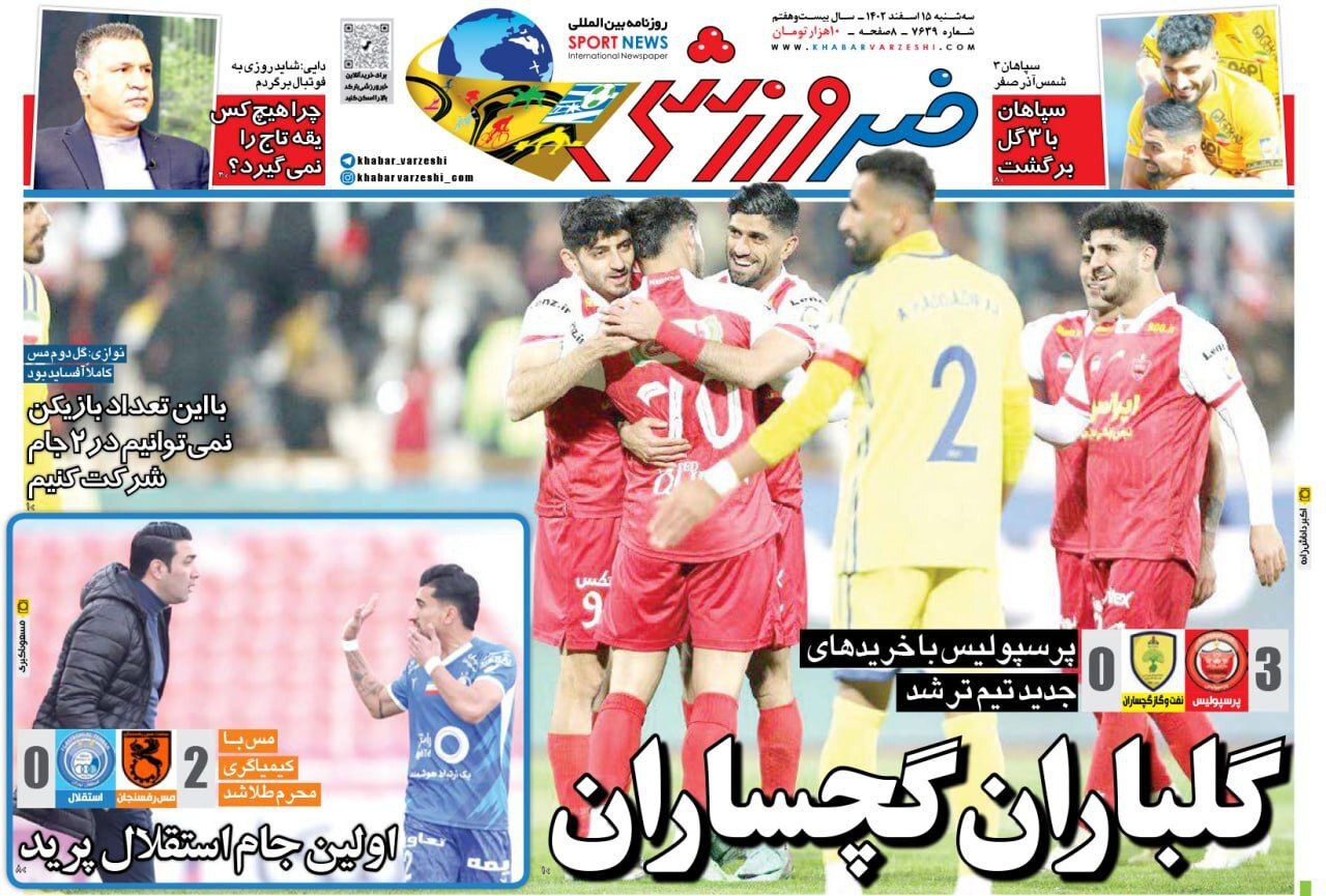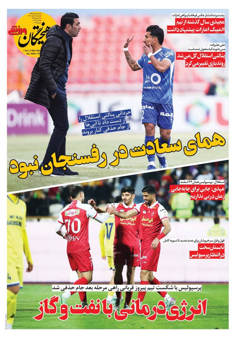روزنامههای ورزشی سه شنبه ۱۵ اسفند ۱۴۰۲