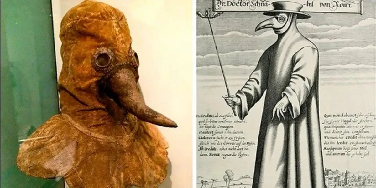 پزشکان متخصص طاعون، با ماسک منقاری و لباسی مانند لباس جادوگران ظاهر میشدند. این لباس متشکل از یک کلاه با روزنهای برای بینایی و یک منقار پر از ترکیباتی از گیاهان دارویی (مانند دارچین، تربانتین، فلفل، گداز مس و...) بود که تصور میشد هوای آلوده را دفع میکند. روپوش چرمی روغنی، چکمهها و دستکش نیز وجود داشت تا بیماری از منافذ پوست وارد نشود.