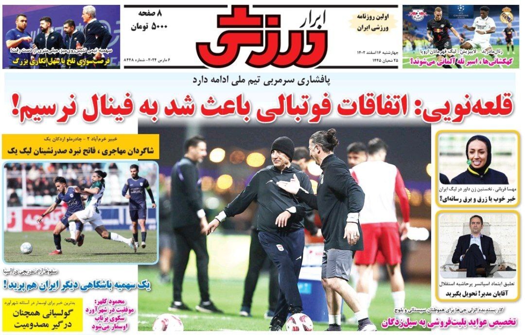 روزنامه‌های ورزشی چهارشنبه ۱۶ اسفند ۱۴۰۲
