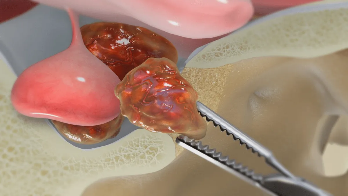 اگر رگ خونی بزرگ در حین جراحی آسیب ببیند، ممکن است خونریزی شدید و مداوم به مغز یا بینی رخ دهد.