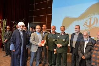 سپس یکی از همرزمان شهید خلیل فردوسی به بیان توضیحاتی در خصوص آن شهید و چگونگی یگان تخریب ارائه داد و با دعوت از تمامی همرزمان شهید خلیل فردوسی در جایگاه سالن، صحنهای غرور انگیز و احساسی را رقم زد.