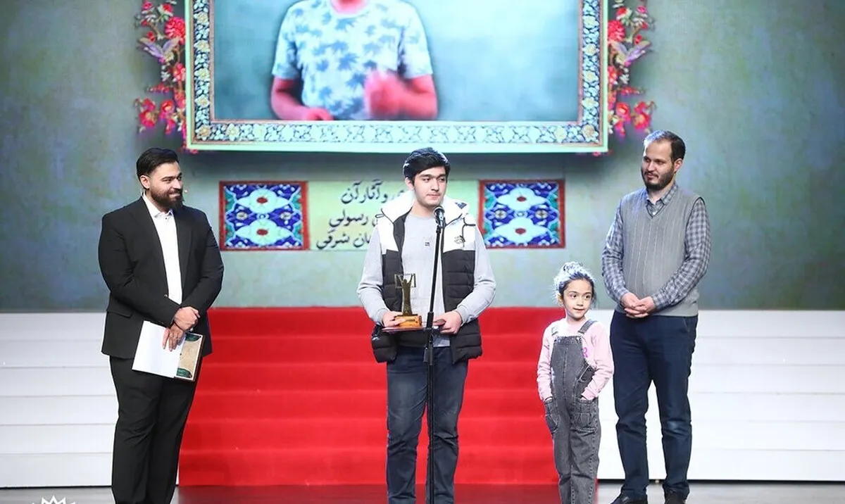 امیرحسین خمبری کارگردان و تدوینگر فیلم «خراش» تندیس تیزر فیلم را دریافت کرد.