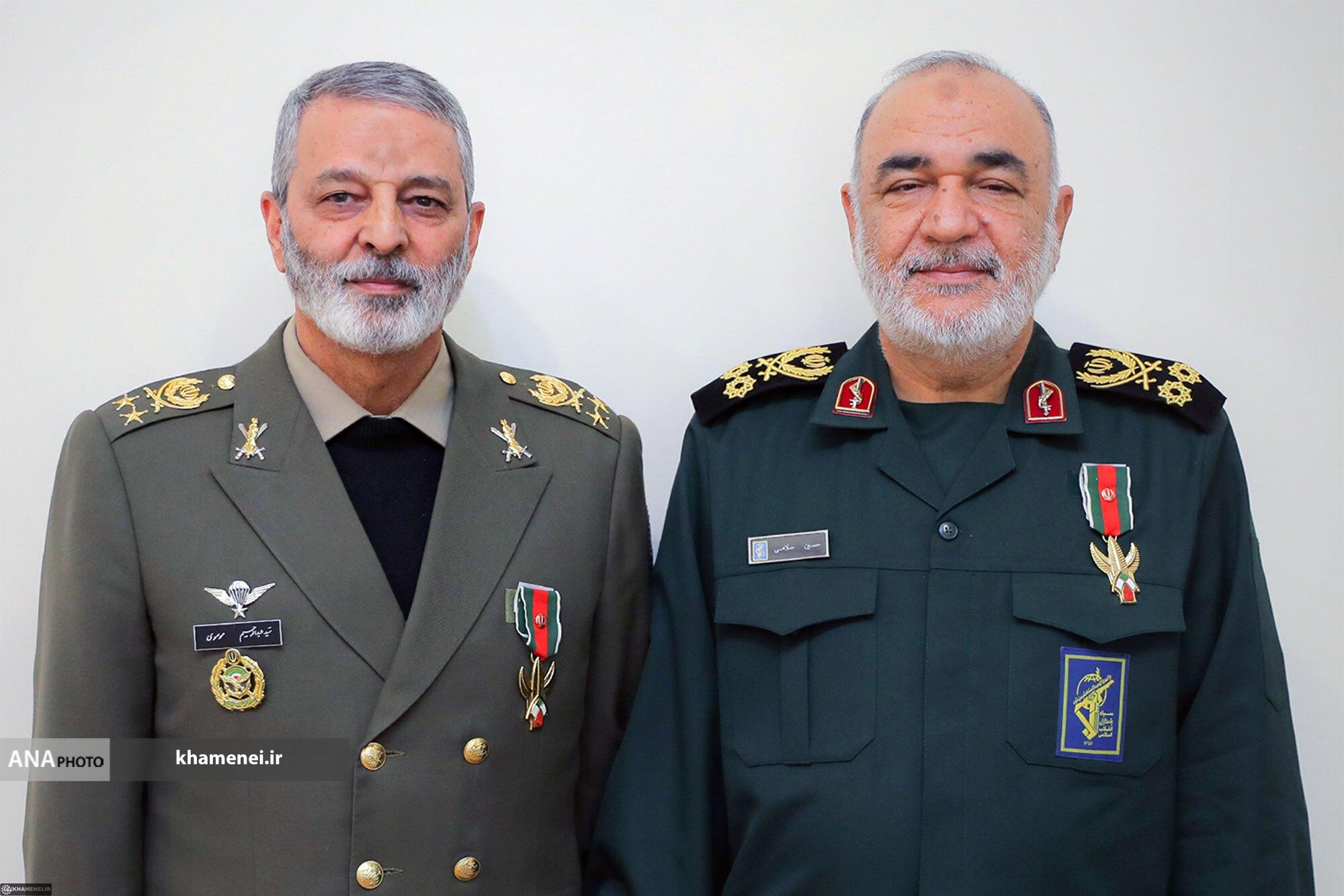 اعطای نشان فتح به فرماندهان کل ارتش و سپاه توسط رهبر انقلاب