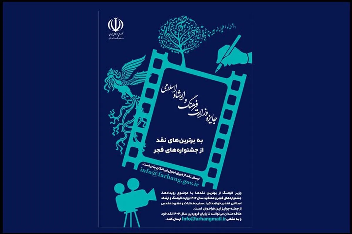 مرکز روابط عمومی وزارت فرهنگ و ارشاد اسلامی با انتشار فراخوانی از قدردانی وزیر فرهنگ و ارشاد اسلامی در ارایه بهترین نقدها با موضوع جشنواره و عملکرد این وزارت خانه در سال ۱۴۰۲ خبر داد.