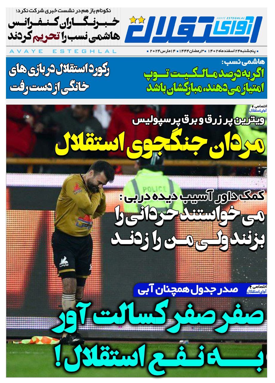 روزنامههای ورزشی پنجشنبه ۲۴ اسفند ۱۴۰۲