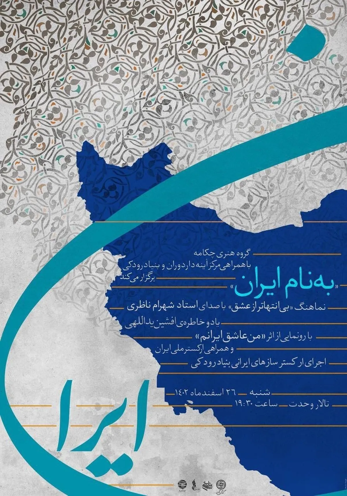 برنامه «به نام ایران» با یادی از افشین یداللهی، شاعر و ترانهسرای فقید توسط گروه هنری چکامه با همکاری مرکز آینهداران دوران و بنیاد رودکی در تالار وحدت برگزار میشود.