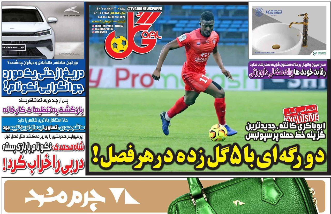 پیشخوان روزنامههای ورزشی شنبه ۲۶ اسفند ۱۴۰۲ را مشاهده کنید.