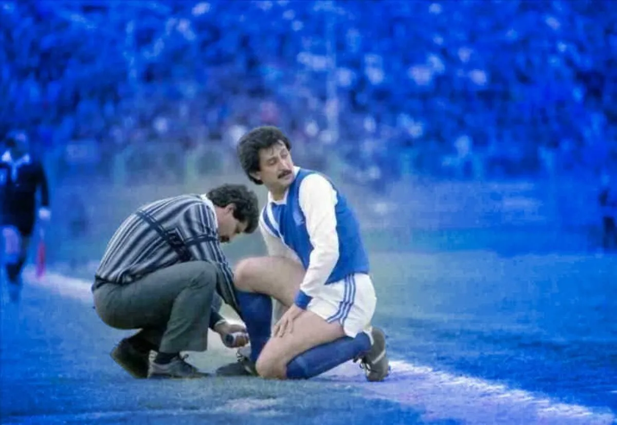 عکس مورد نظر که در پوستر استقلال به چشم می خورد مربوط به سالهای ۶۲ و ۶۳ است که زنده یاد منصور پورحیدری سرمربی و همه کاره استقلال بود.آن روز پزشک استقلال روی نیمکت حضور نداشت و وقتی بازیکنی مصدوم میشد خود پورحیدری به کمک او میرفت. شاید جالب باشد بدانید که در دهه ۶۰ جمله معروفی وجود داشت که میگفتند همه باشگاه استقلال در صندوق عقب ماشین منصور پورحیدری قرار دارد.