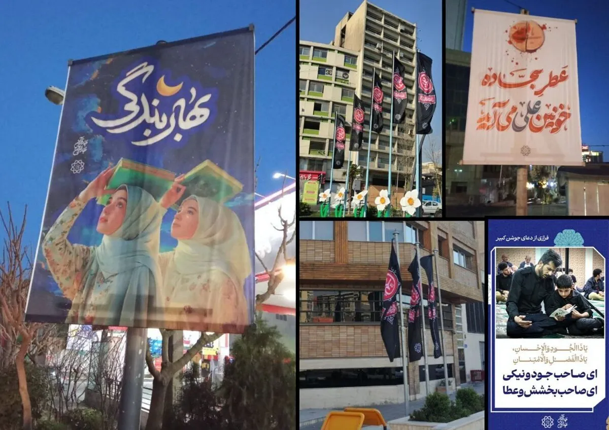 بر اساس این گزارش؛ اکرانهای فرهنگی لیالی قدر تحت پویش "بهار قرآن بهار ایران" در ۳۰۰ بیلبورد شهری با فرازهایی از دعای جوشن کبیر و تسلیت ایام شهادت حضرت علی (ع) و ادای احترام به امیرالمومنین بر فضاهای شهری پایتخت نصب شده است.