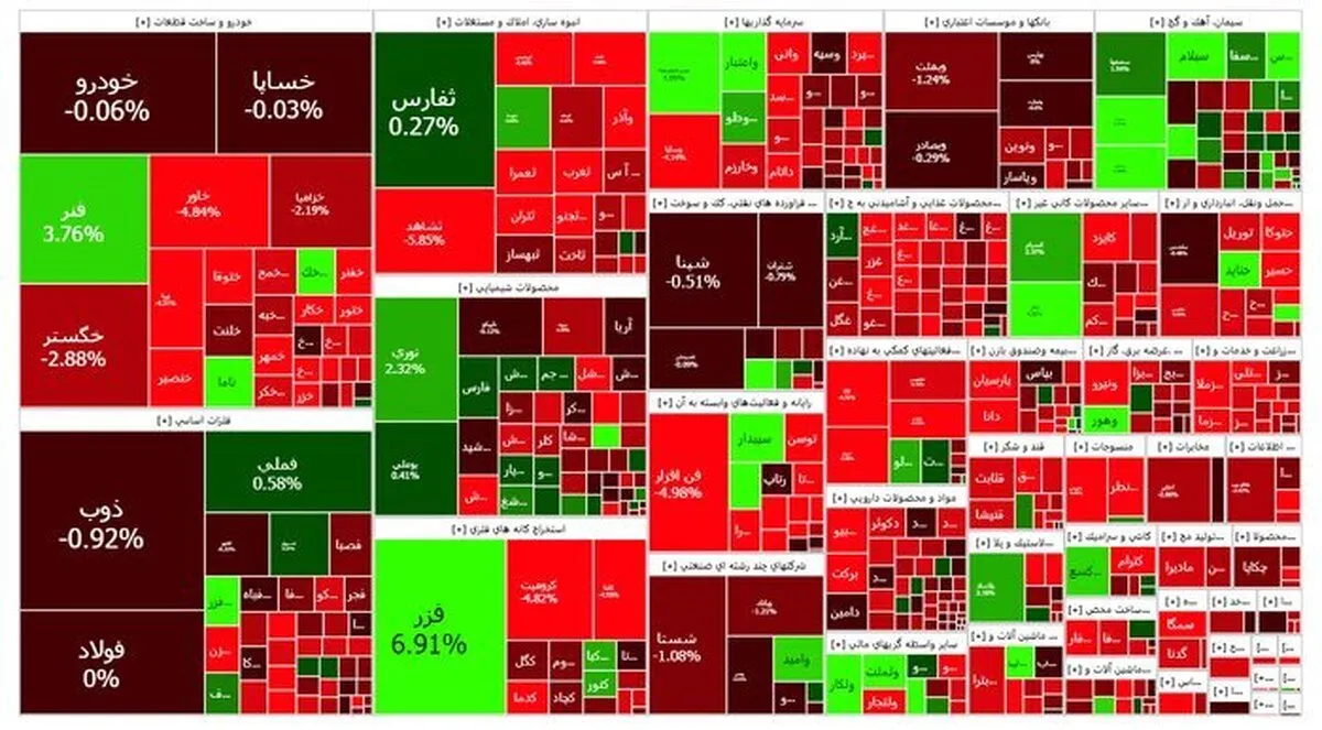 نمادهای فولاد، شپنا، وبملت، شستا و فملی بیشترین اثر منفی و نمادهای وامدی و نوری بیشترین اثر مثبت را بر شاخص بورس گذاشتند.