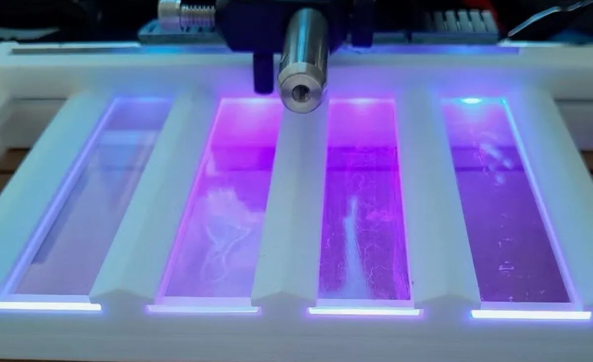 یک LED ماورای بنفش که در کنار اسلاید قرار دارد، نور خود را نه به جلو یا پشت شیشه، بلکه به یک لبه آن میتاباند. همانطور که اشعه ماورای بنفش از ضخامت شیشه عبور میکند، توسط نانوذرات پراکنده و پخش میشود که نور UV را منعکس کرده ولی آن را جذب نمیکند.