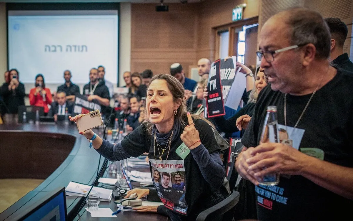 جمعی از خانواده‌های اسرای اسرائیلی با به هم ریختن جلسه کنست، خواستار توافق با حماس و آزادی اسرا شدند.