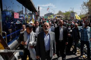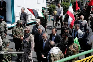 همزمان با آخرین جمعه ماه مبارک رمضان، راهپیمایی روز جهانی قدس با حضور گسترده مردم در تهران برگزار شد. همچنین در این مراسم پیکر مطهر شهید سرافراز سرلشکر زاهدی و دیگر یارانش که بدست رژیم صهیونیستی در سوریه به شهادت رسیدند تشییع شد.