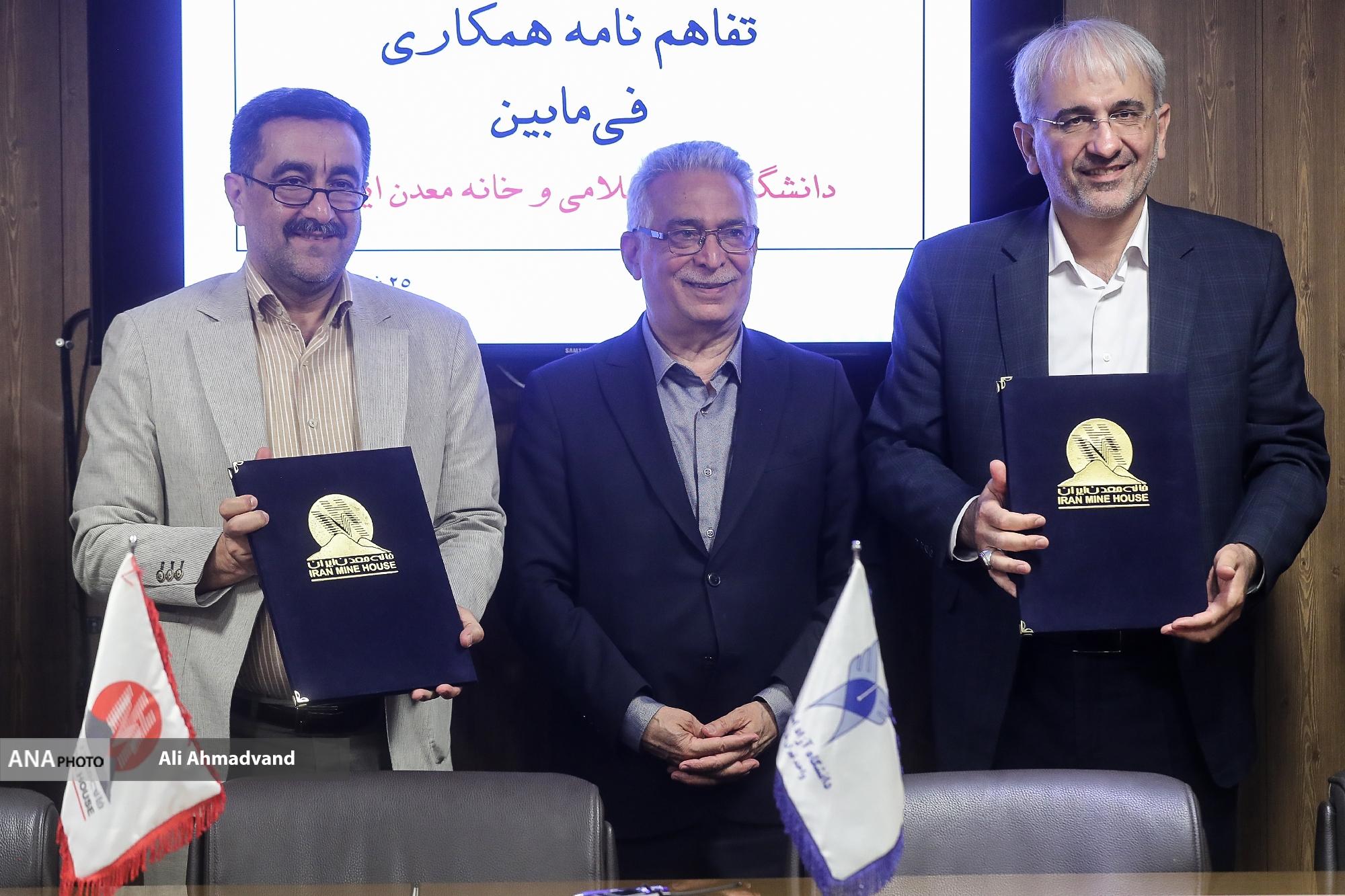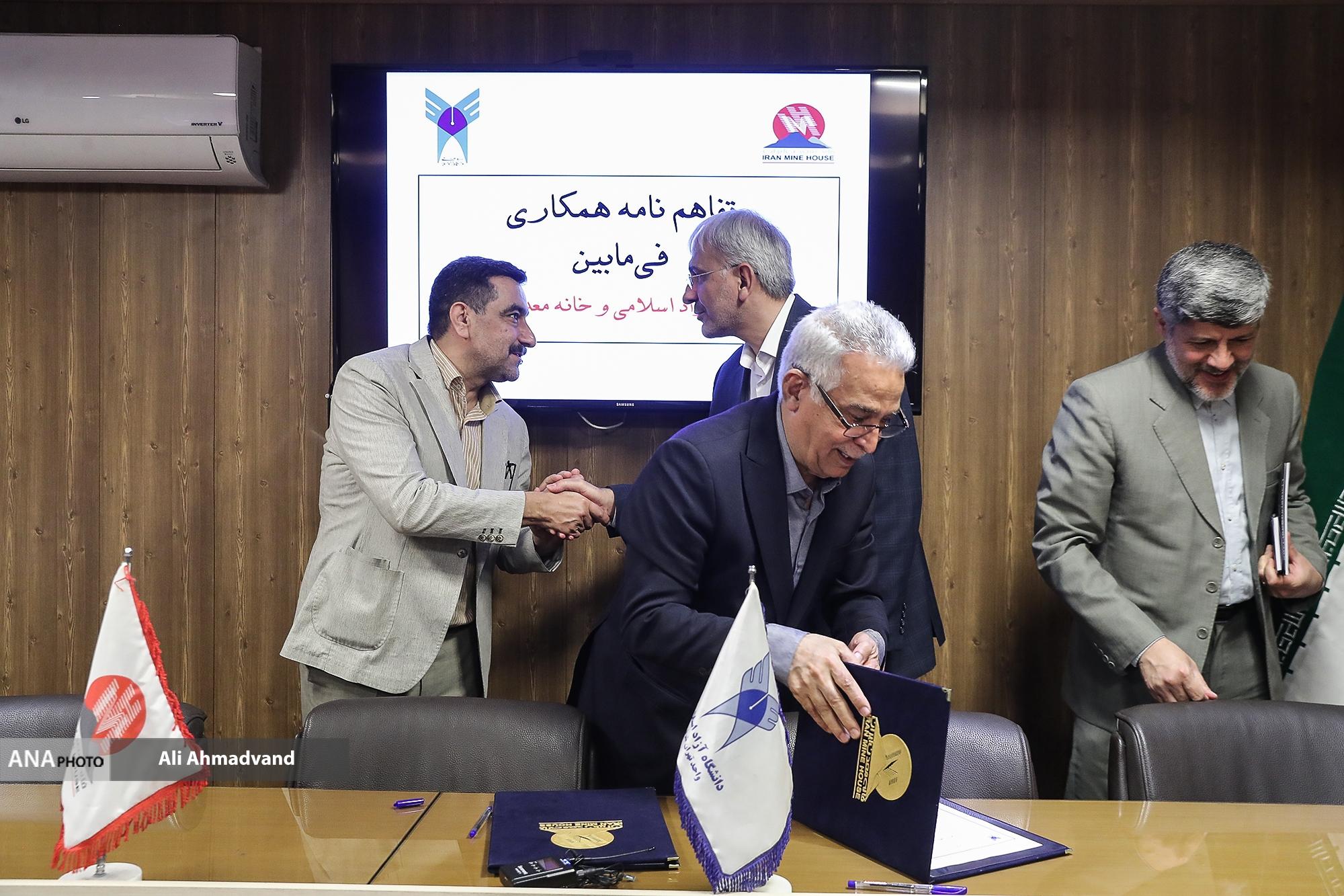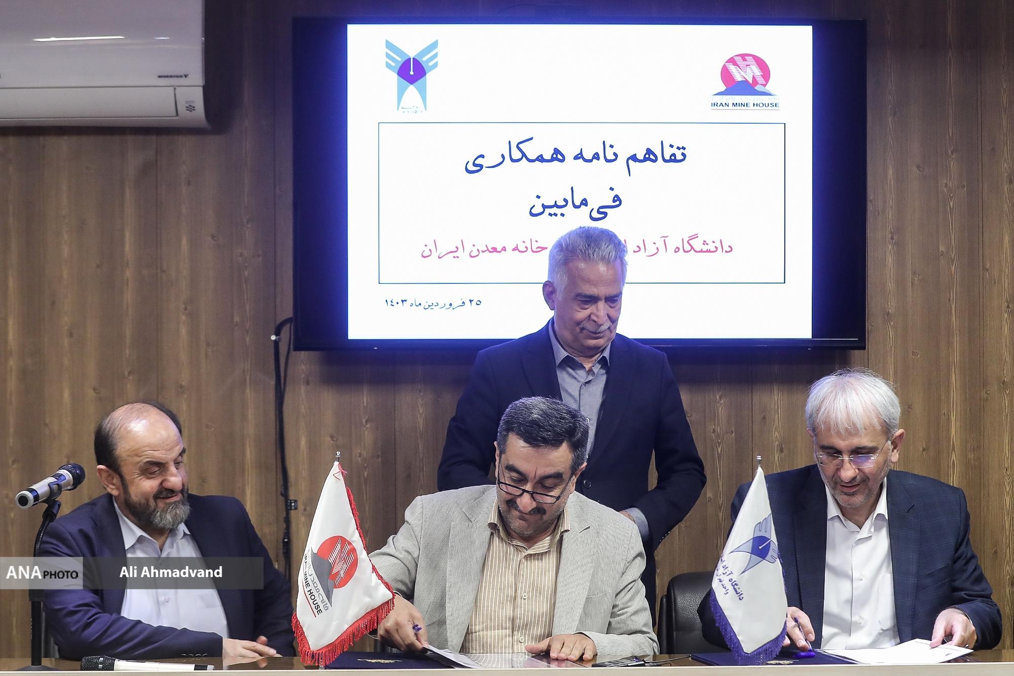 تفاهم‌نامه همکاری میان خانه معدن و دانشگاه آزاد اسلامی با حضور مجید مشکینی معاون تحقیقات، فناوری و نوآوری دانشگاه آزاد اسلامی و محمدرضا بهرامن عضو هیئت مدیر خانه معدن به امضا رسید.