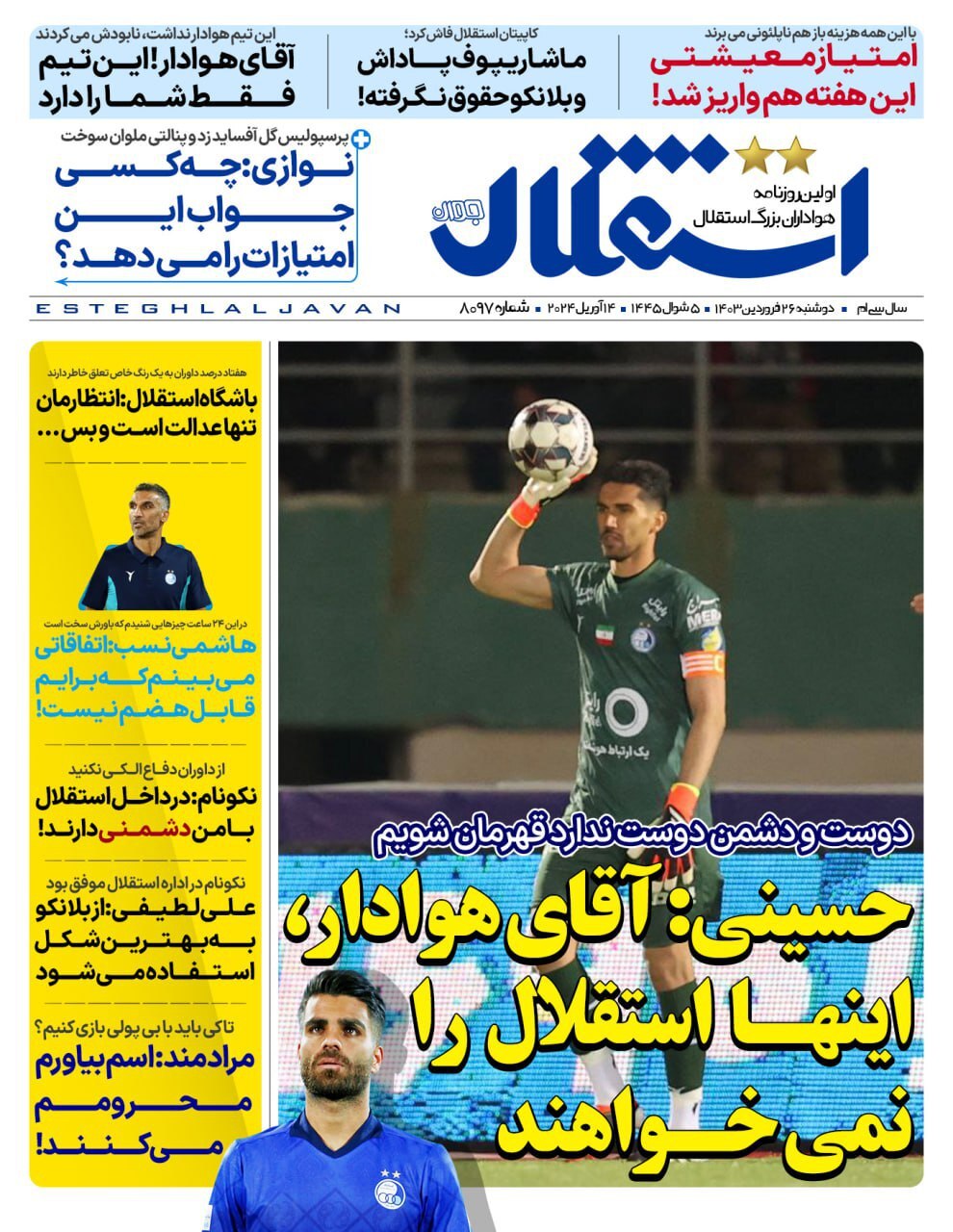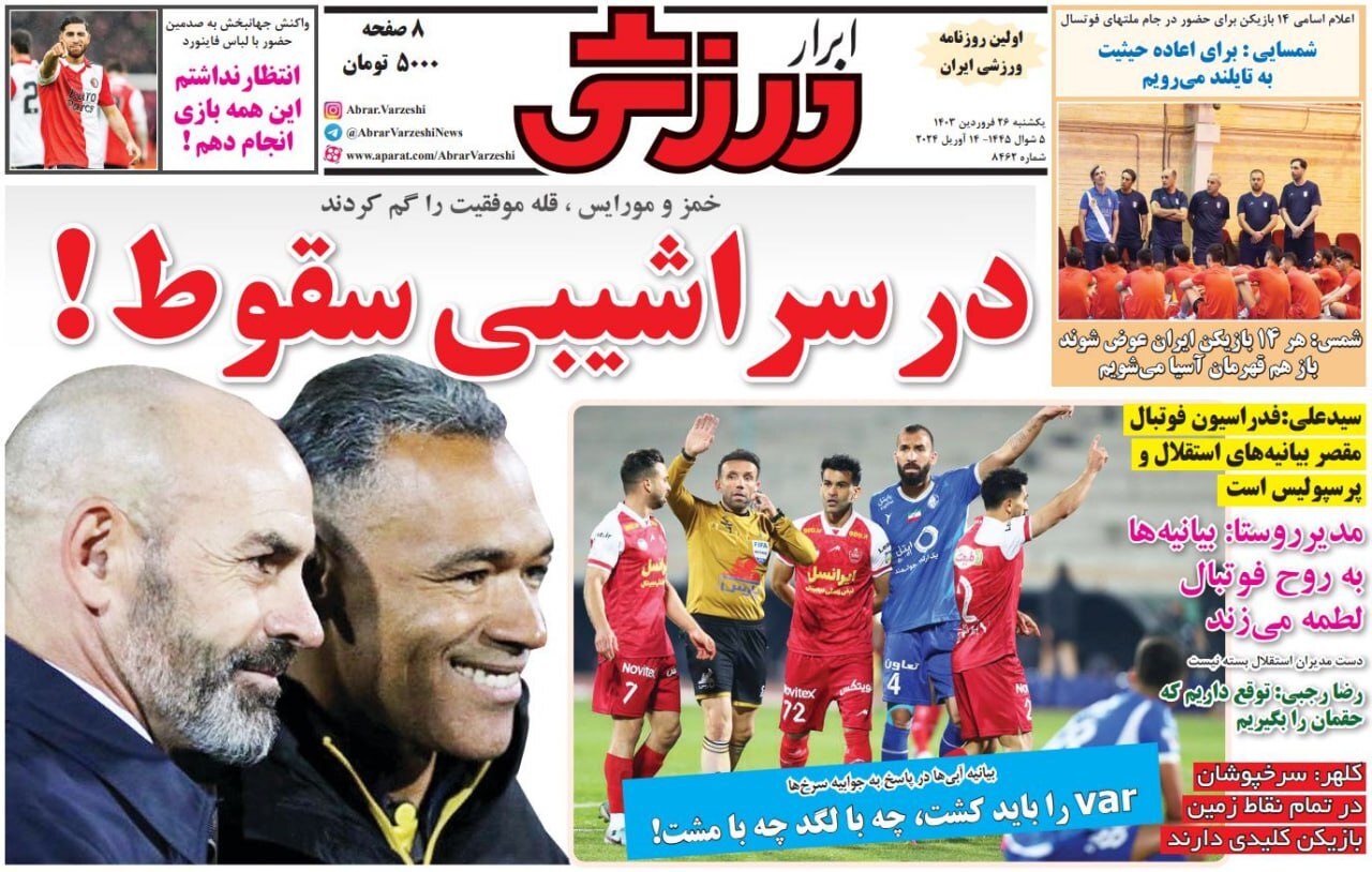 روزنامههای ورزشی یکشنبه ۲۶ فروردین ۱۴۰۳