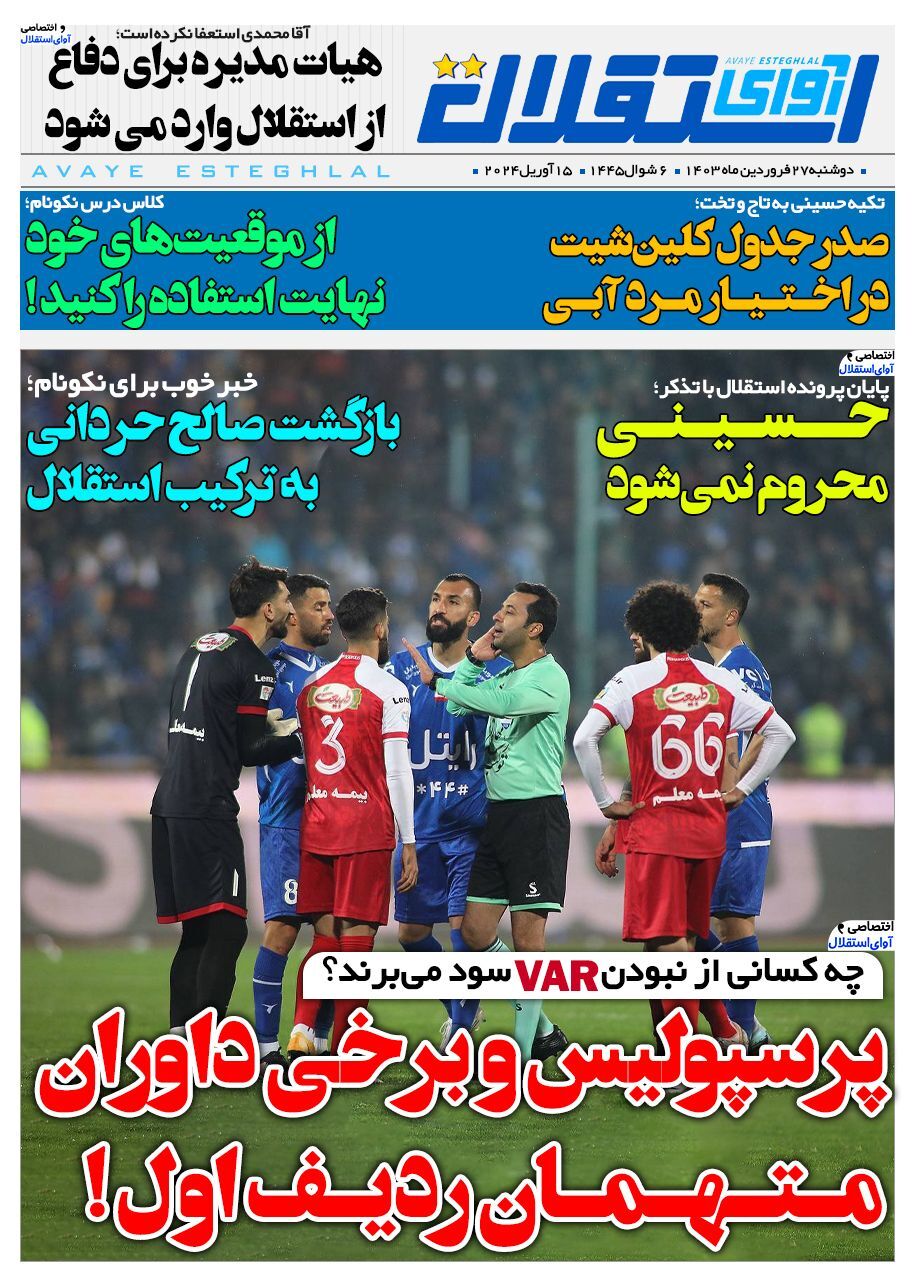 روزنامههای ورزشی دوشنبه ۲۷ فروردین ۱۴۰۳