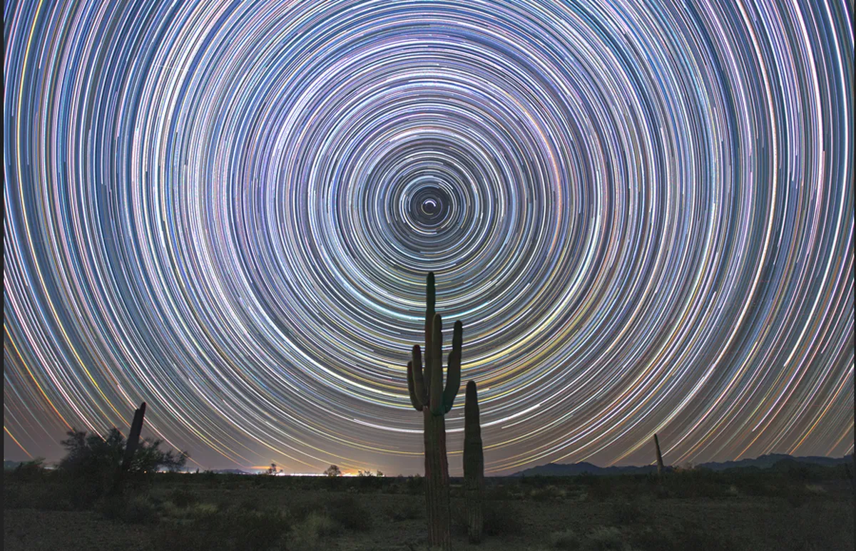 در این عکس که طی بیش از 8 ساعت گرفته شده است، حرکت مدور آسمان بر فراز پناهگاه ملی حیات وحش کوفا در آریزونا ثبت شد. عکاس با استفاده از دوربین DLSR هر تصویر را به مدت 30 ثانیه با تنظیمات f/4 و ISO 5000 تهیه کرد.