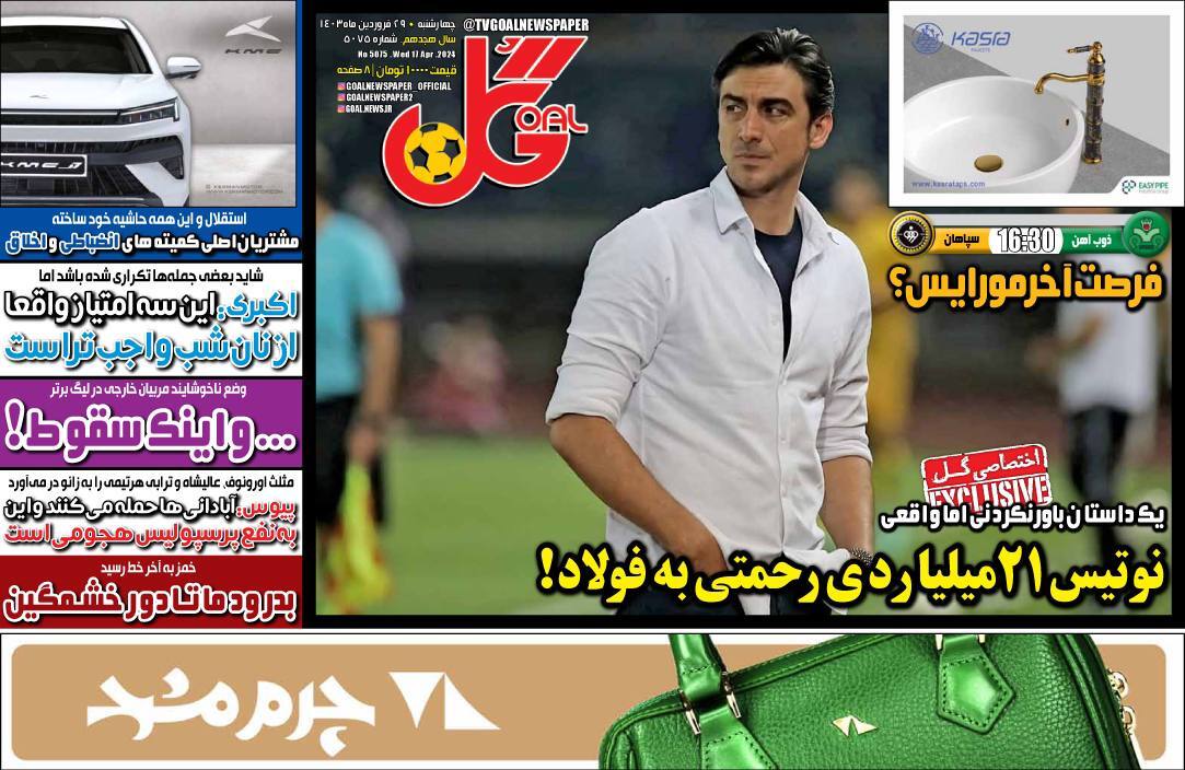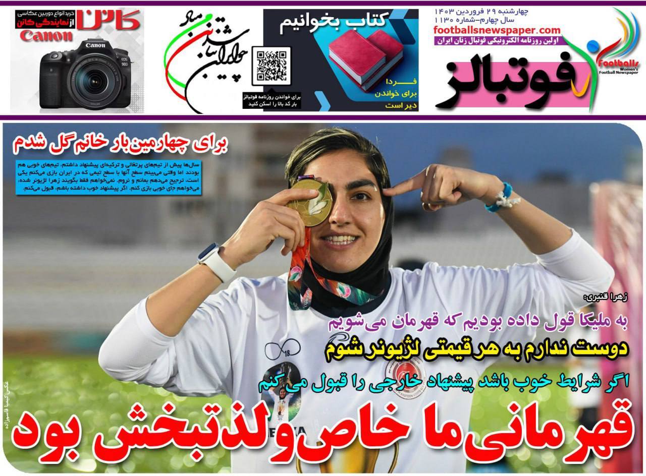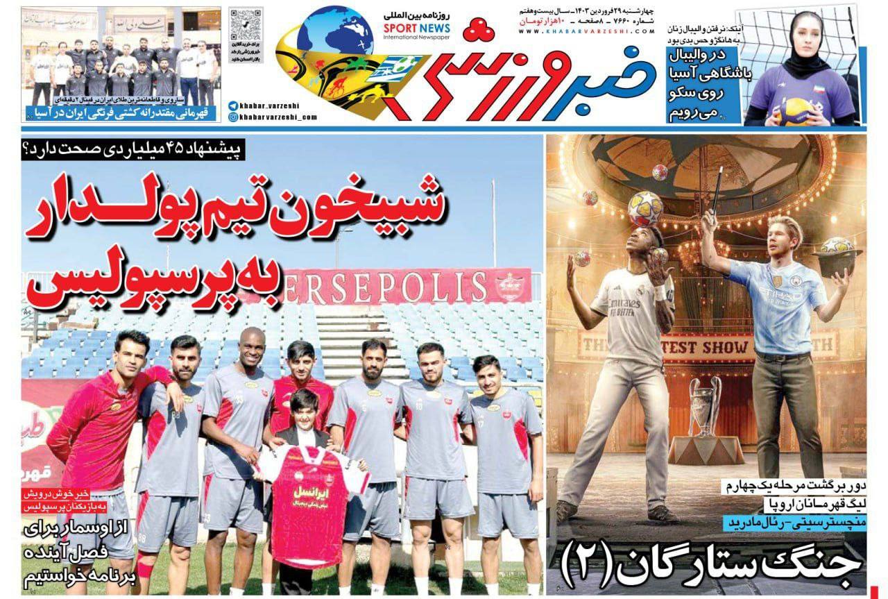 روزنامههای ورزشی چهارشنبه ۲۹ فروردین ۱۴۰۳