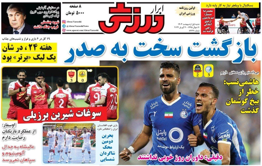 روزنامههای ورزشی شنبه اول اردیبهشت ۱۴۰۳