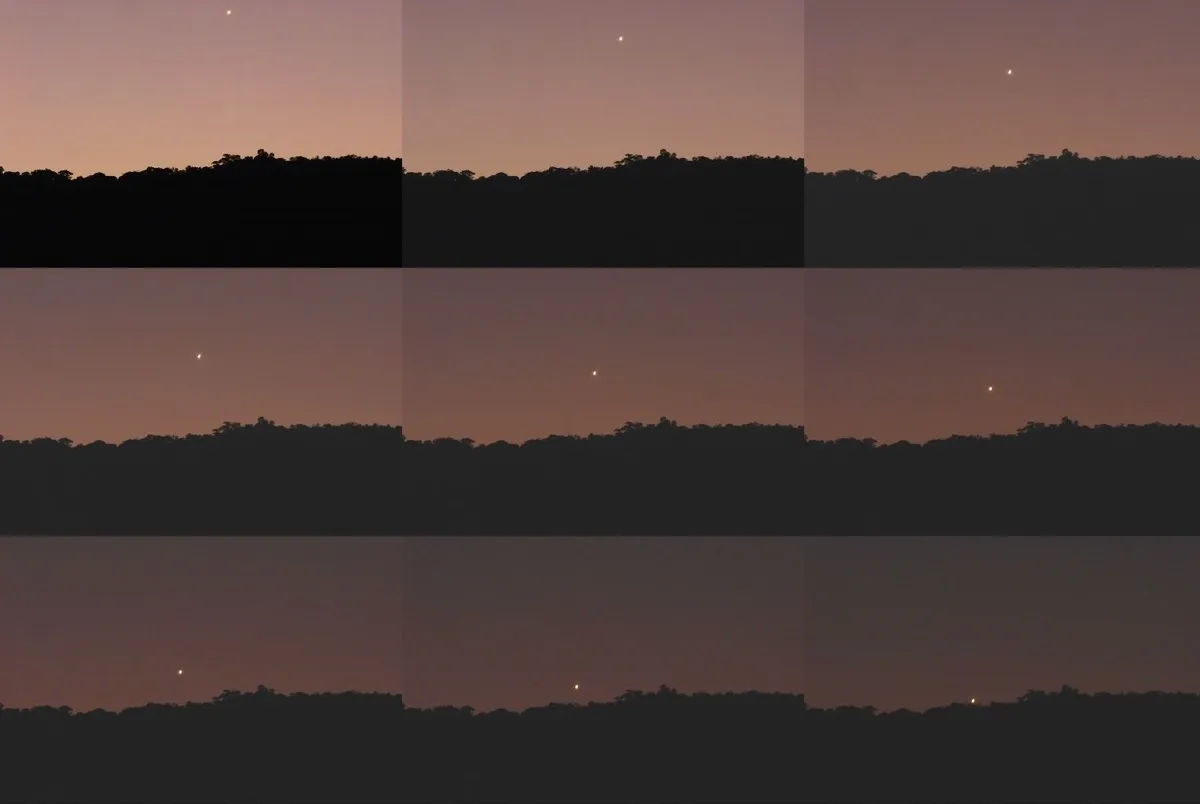 پیتر لوونشتاین (Peter Lowenstein) از موتار، زیمبابوه، در 20 آوریل 2024 در ساعت 6:22 بعد از ظهر با استفاده از دوربین Panasonic Lumix DMC-ZS40 روی سه پایه عکس گرفت. او 9 تصویر از 26 عکس را که بین ساعت 6:22 تا 6:30 بعد از ظهر گرفته شده بود با یک نمای دور که روز قبل در ساعت 6:28 بعد از ظهر گرفته شده بود ترکیب کرد. این تصویر غروب مشتری را نشان می دهد. در آن روز مشتری در آسمان غروب در غرب و شمال غربی موتاره دیده شد. تشخیص آن به دلیل نزدیکی به افق و نور محو شده خورشید دشوار بود. پیتر حوالی ساعت 6 بعدازظهر مشتری را از ظاهرش با حوصله دنبال کرد تا اینکه حدود نیم ساعت بعد در زیر افق ناپدید شد.