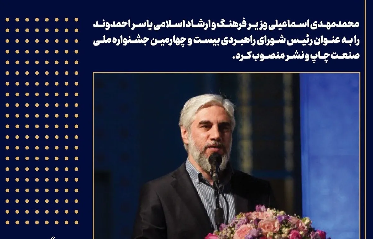 وزیر فرهنگ و ارشاد اسلامی در حکمی یاسر احمدوند معاون امور فرهنگی این وزارتخانه را به عنوان رئیس شورای راهبردی بیستوچهارمین جشنواره ملی صنعت چاپ و نشر منصوب کرد.